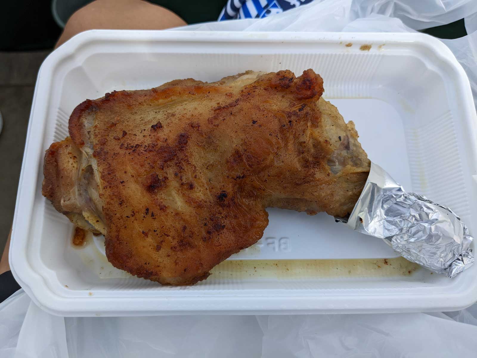 開場になって入って席へ。 ノックをしている風景を見たり、ノンアルコールビールや骨付鳥などを食べたりして試合開始を待つ。