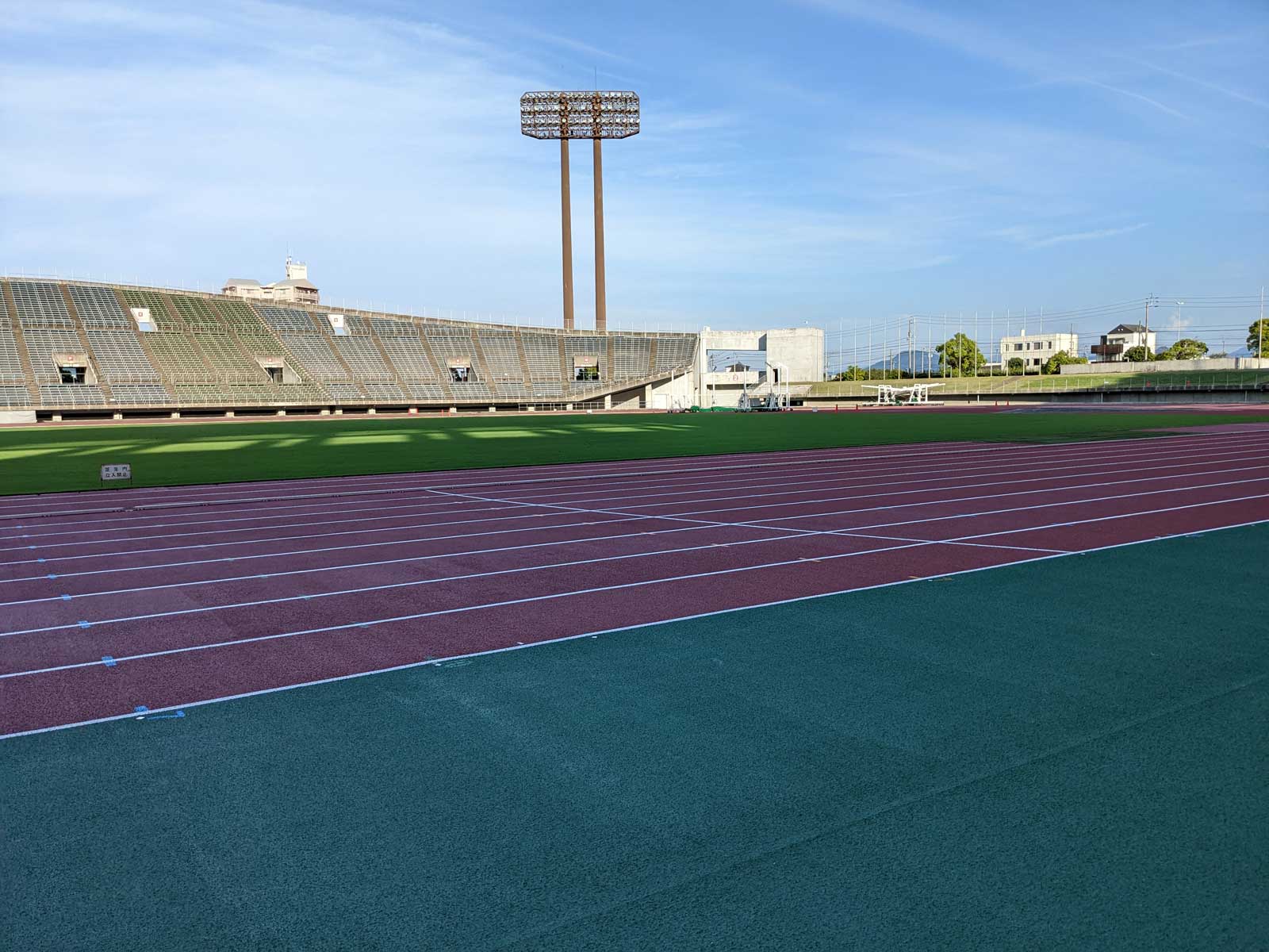 久しぶりに丸亀競技場に来たが、この冬ずっとメンテナンスしていたので、競技場がとても綺麗になっていた。