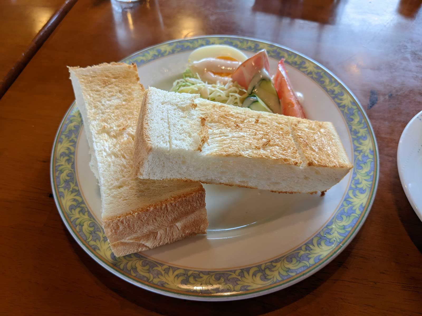 三女が陸上やっている間は、すぐ近くにある「アーチ」という喫茶店で朝ごはん。 モーニングセット450円だったが、コーヒーがあまり美味しくなかった。 店がけっこうボロくて、ミシミシといっていた……