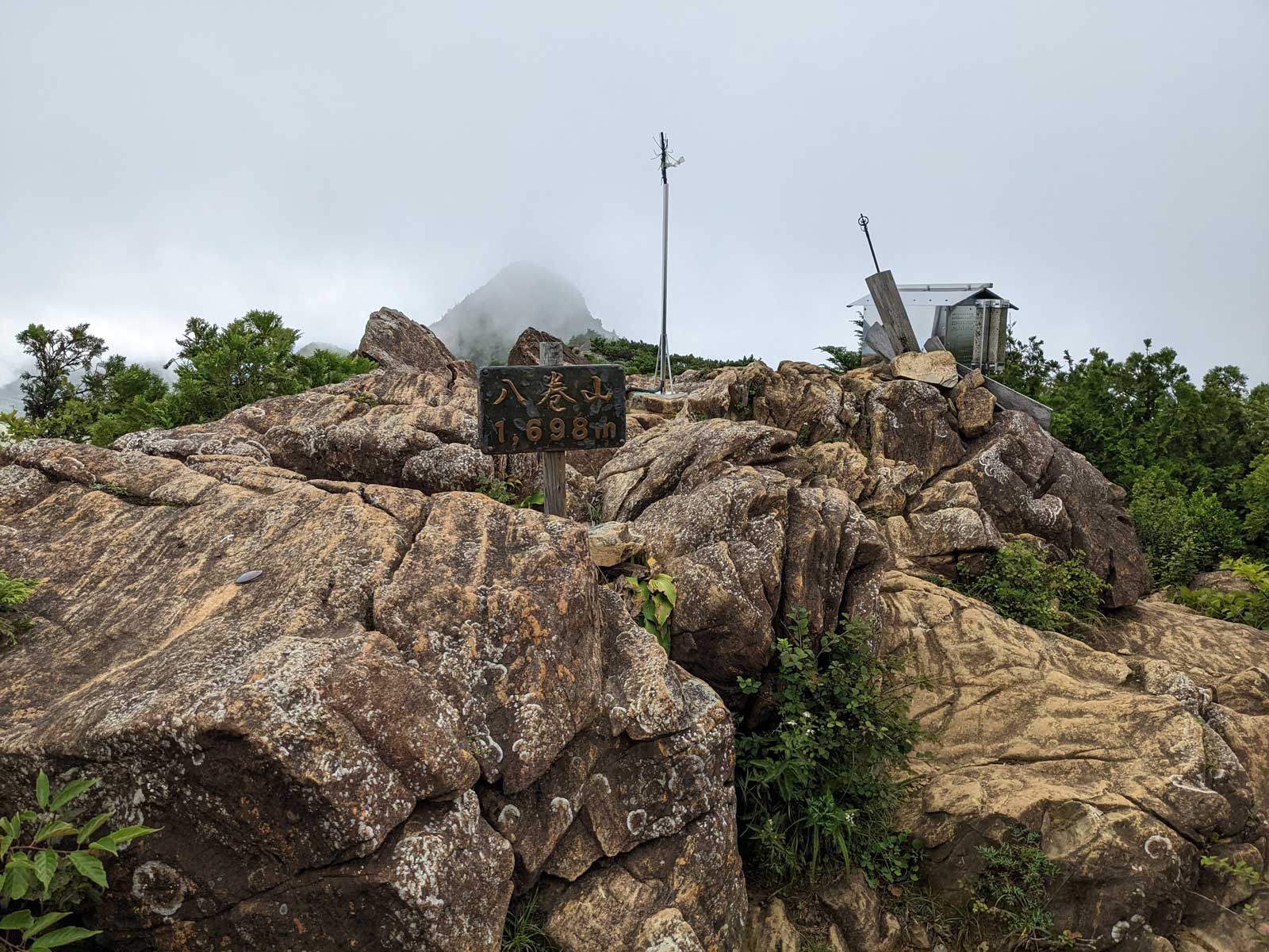 岩場を抜けて八巻山へ到着。 ここで水分だけ補給して、東赤石山山頂へと向かう。 楽しい岩場歩きも八巻山山頂から10分ほど歩いたら終了してしまった。