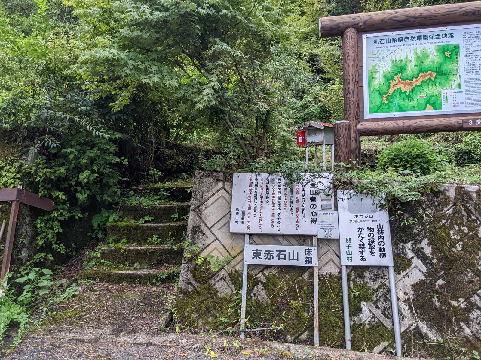 準備をして登山開始。 東赤石山は、過去に一番登った回数の多い山なので、地図をみないでもだいたいの道やコースタイムは把握しているつもりだったけれど、久しぶりすぎるので大分道中の様子が変わっているかもしれない。 昨晩雨が降ったのかわからないけれど、登山道は濡れて湿っており、ジメジメとした感じだった。