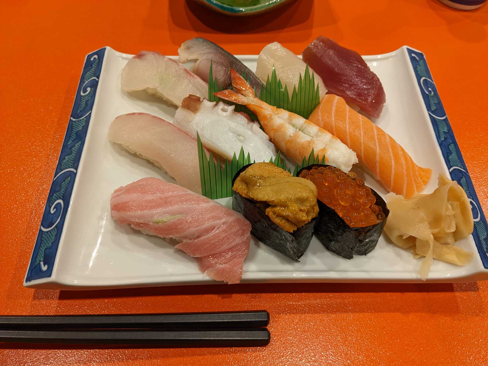 特上にぎり、玉子焼き、名前忘れたけど日本酒を飲んで楽しむ。