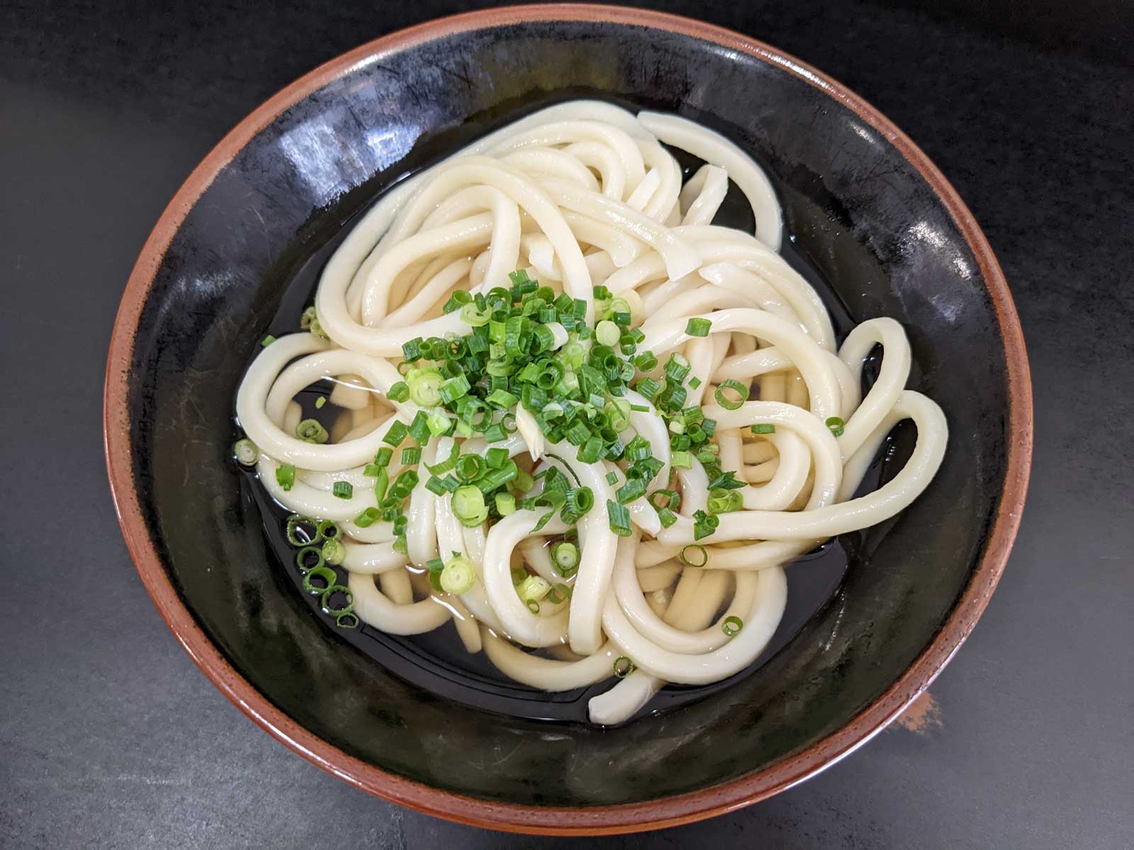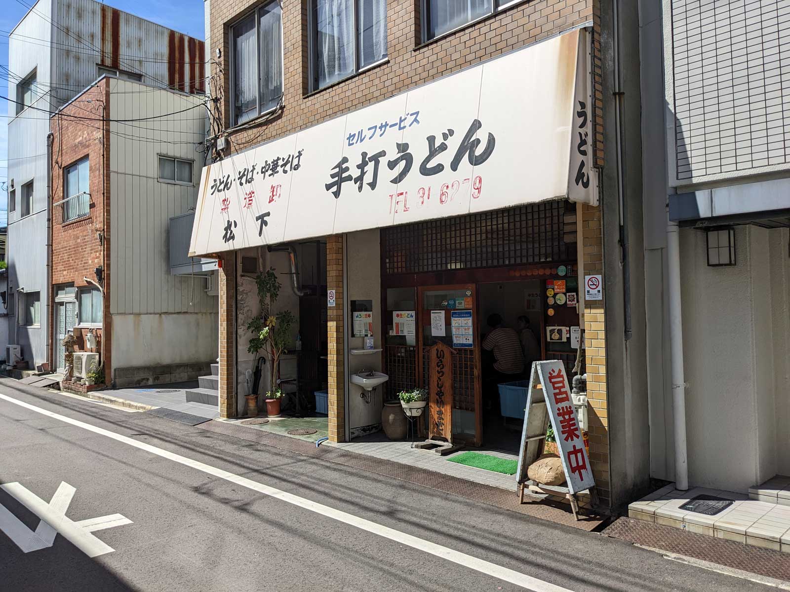 まずは1軒目。 栗林公園の北の方にある「松下製麺所」へ。 何でもセルフでやるスタイルの製麺所を一度体験しないといけないなと思って。 そこそこの名店だし、このお店は。 メニューはかけうどんしかなく、玉数のみを注文するスタイル。 1軒目でお腹がいっぱいにならないように、1玉だけ頼んだ。 自分で湯がいて出汁を入れて食べ、残った汁やドンブリは自分で片付ける。