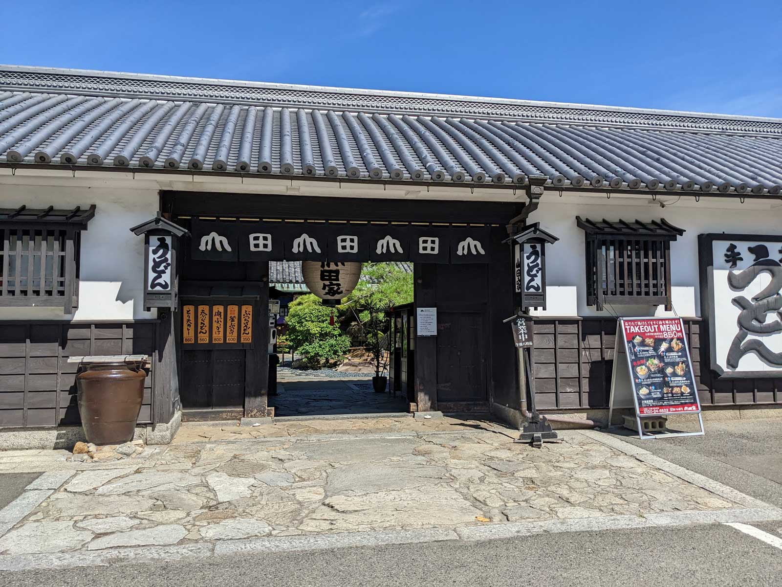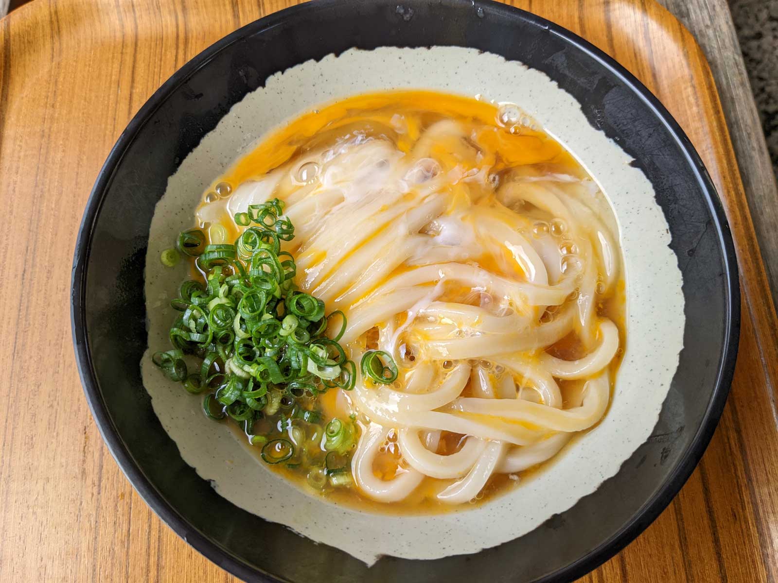 最後は「山越」へ。 牟礼から綾上は遠く、到着したのが12時16分。 ここから空港までは15分くらい見ておかなくてはならないので、時間がかなり厳しい。 全然ゆっくりする余裕はなく、釜玉うどんを注文して、一気に流し込むような食べ方になってしまった。