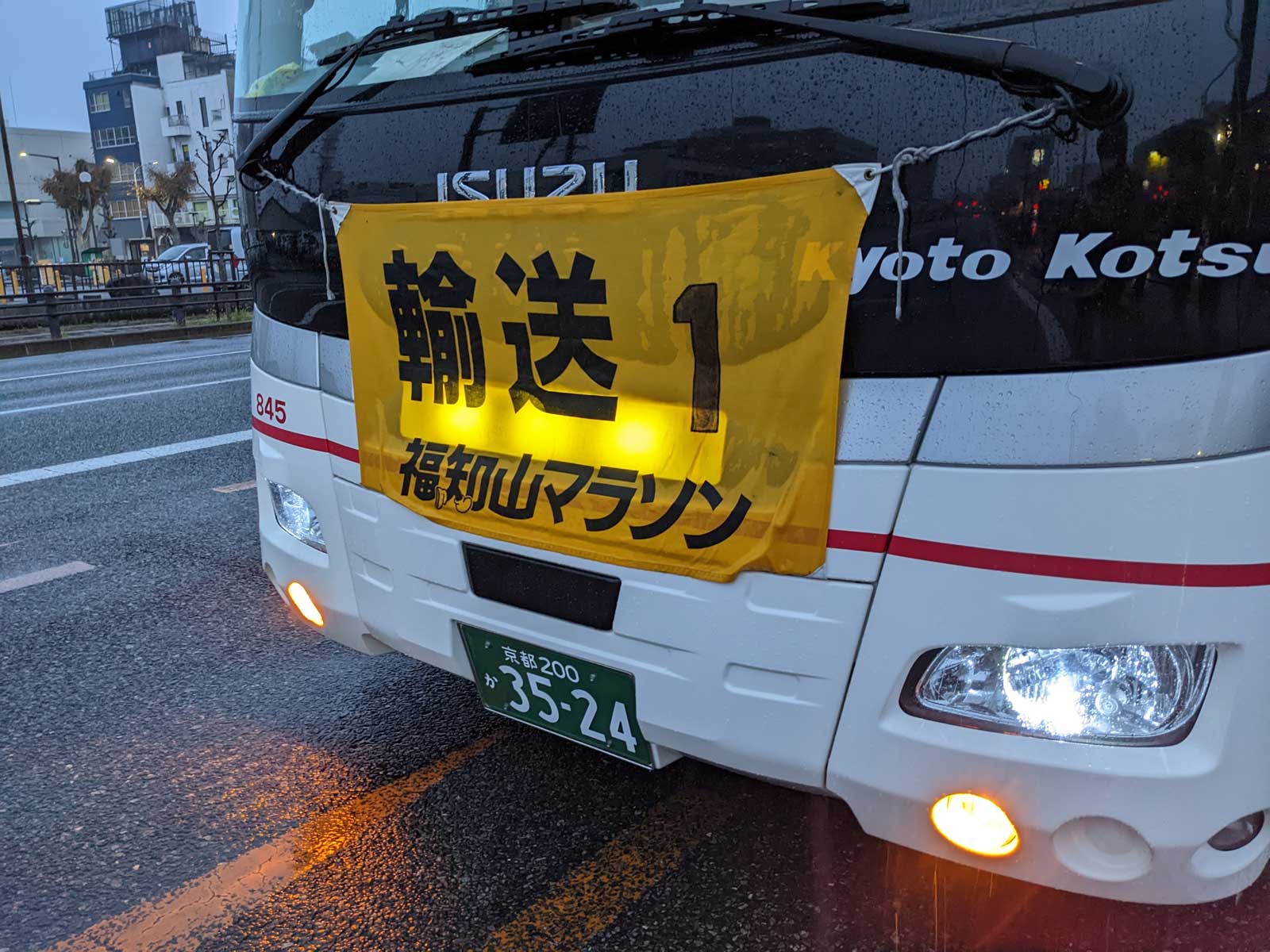 福知山ICで高速を降りて、いつも停めている福知山駅西側のコインパーキングに駐車。 24時に日付が変わり、1日の最大料金が700円だ。 マラソンの駐車券もあるのだけど、駐車場は由良川沿いで、そこから会場まで1.5kmくらい歩かなくてはならない。 歩くのは別にいいのだけど、車を出すのがいつも大渋滞で1時間くらいかかっている様子。 それだったら、700円払って駅前に停めて、駅からのシャトルバスで会場に向かえばいいかなと思っている。 しかも今日は雨だけど、傘を持ってきていないので。