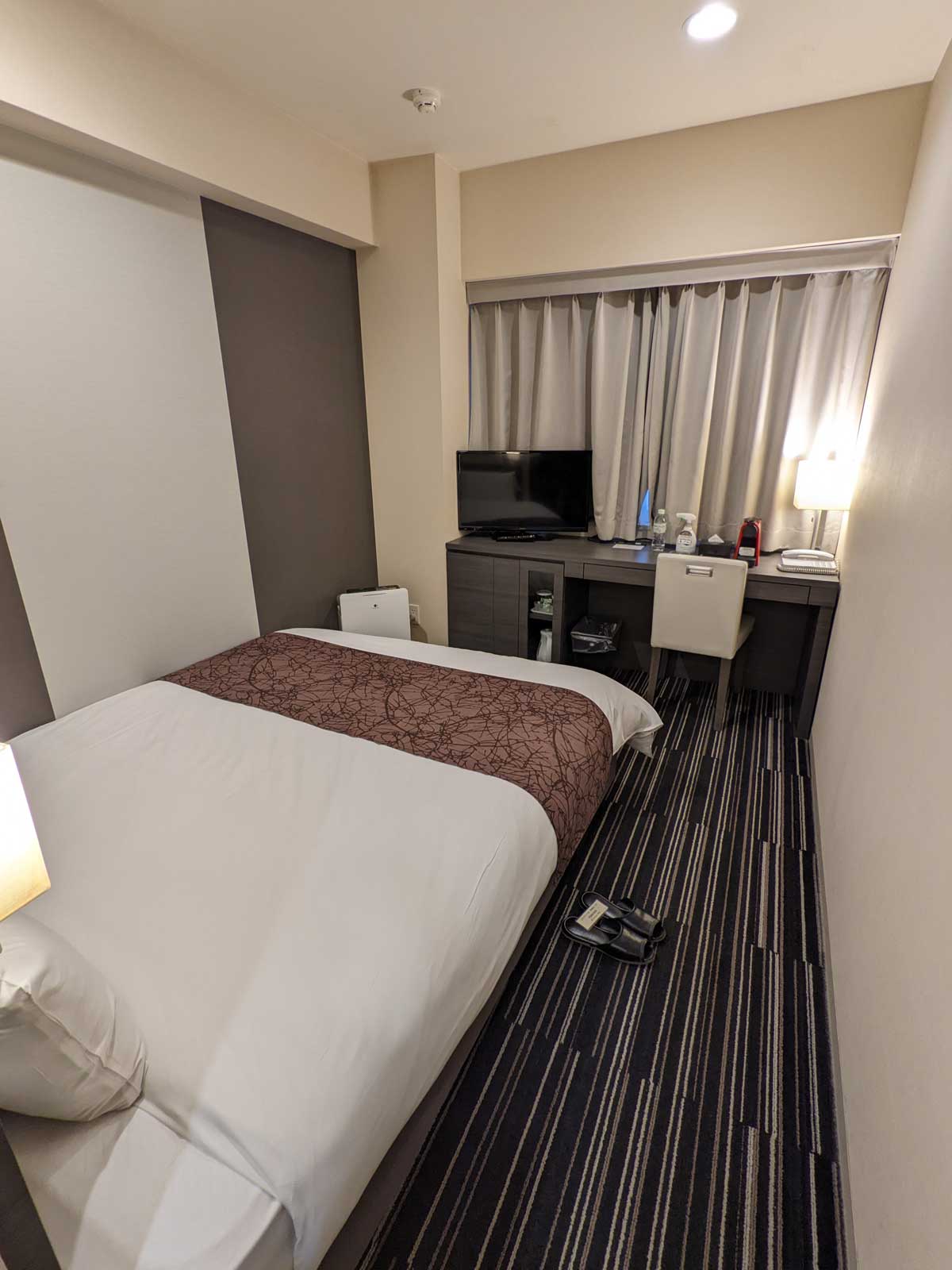今日泊まるのは「ホテルサンルート福知山」。 始めて福知山マラソンに参加したときだったかな? このホテルに泊まった覚えがある。 料金は、1,300円の朝食が込みで、9,150円だった。