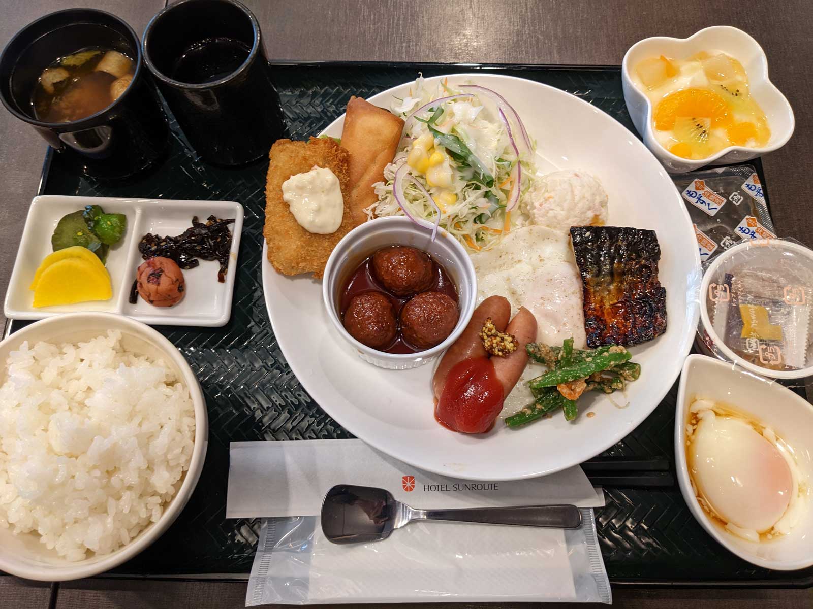 朝7時半くらいに起床。 昨日の福知山マラソンのダメージがかなり残っていて、足も膝も痛い。 朝ごはんはホテルの朝食を食べる。 ホテルの朝食なのに、珍しくバイキング形式ではなかった。 ご飯はおかわりし放題、のりや納豆はセルフサービスで取り放題。 結構量があって、ご飯は1杯だけおかわりしたが、お腹いっぱいになった。