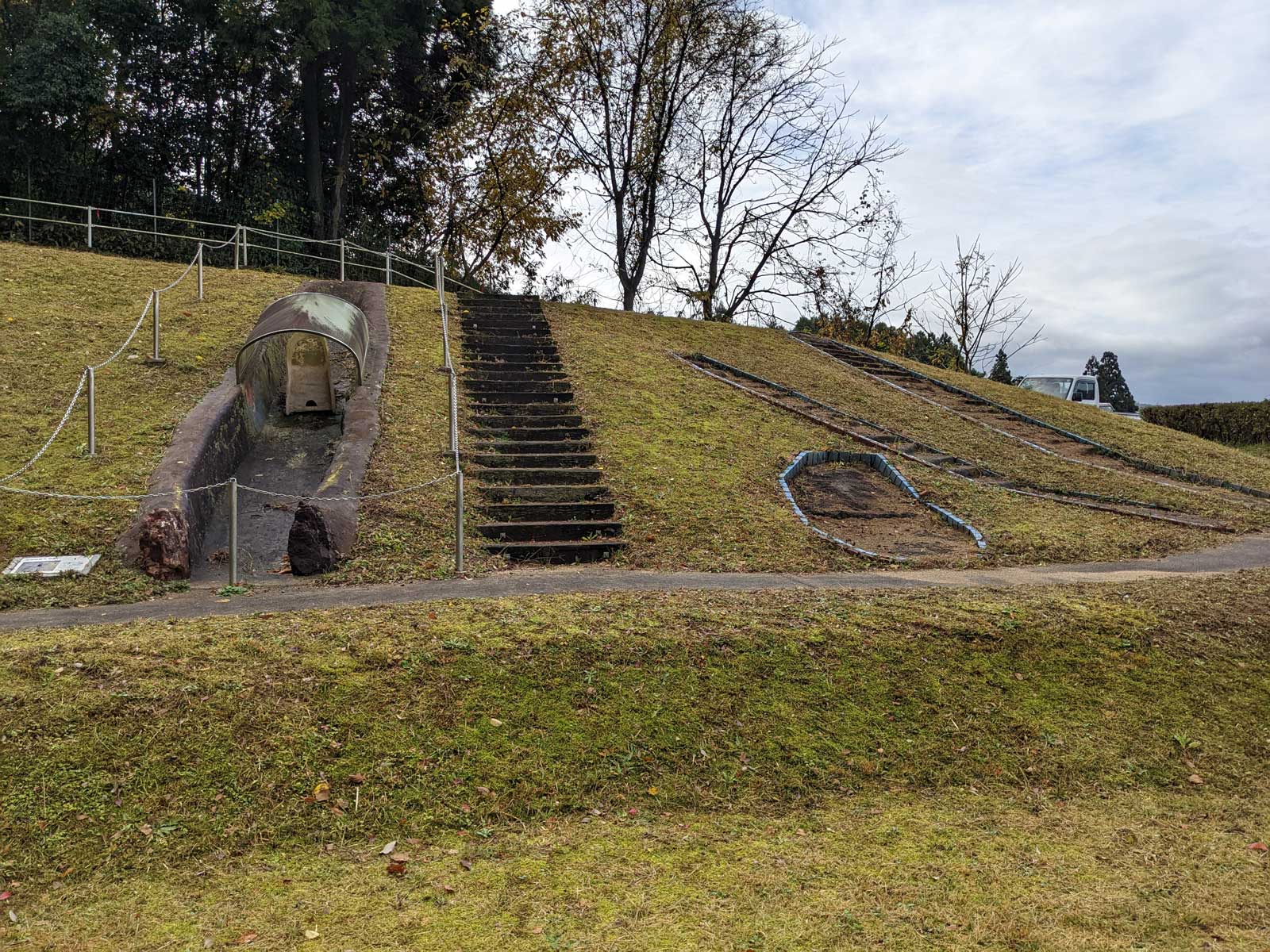 途中で「三ツ塚史跡公園」という看板があったので行ってみる。 白鳳時代の遺跡や窯の跡が見つかった場所で、公園として整備されている。 平日の朝なので、誰もおらず、草刈りの人たちが一生懸命草を刈っていた。 昔の人は土器を作る技術を発見したのだけど、自分の技術を使っても、とても土器を作れる気がしない。 縄文時代とかには既に土器はあったのだけど、白鳳時代の西暦800年くらいだと、自由自在に土器を作るための窯を作ったり構造を工夫したりしているみたいなのですごい。