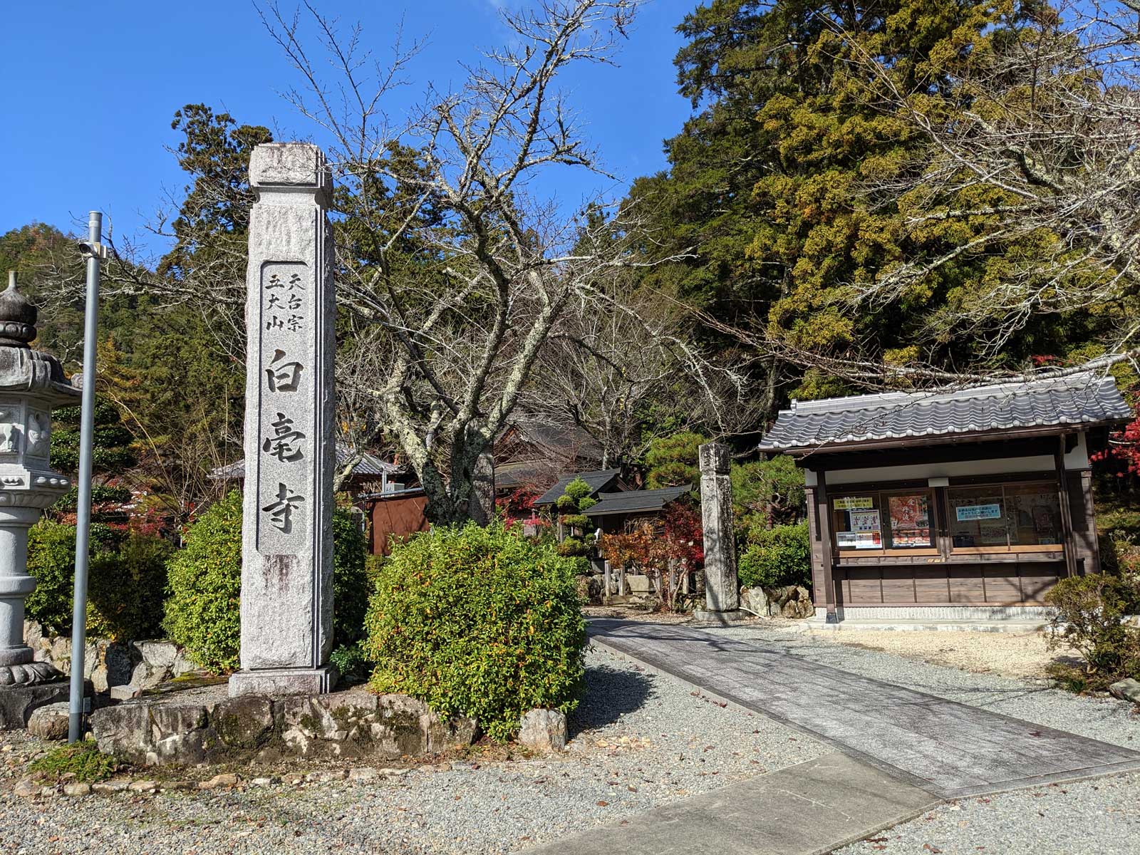 少し進むと、紅葉スポット「白毫寺」とうい看板が見えてきたので行ってみることに。 入口には誰もいなかったけど、「寄付金300円」と書いてあったので箱にお金を入れて中に入る。