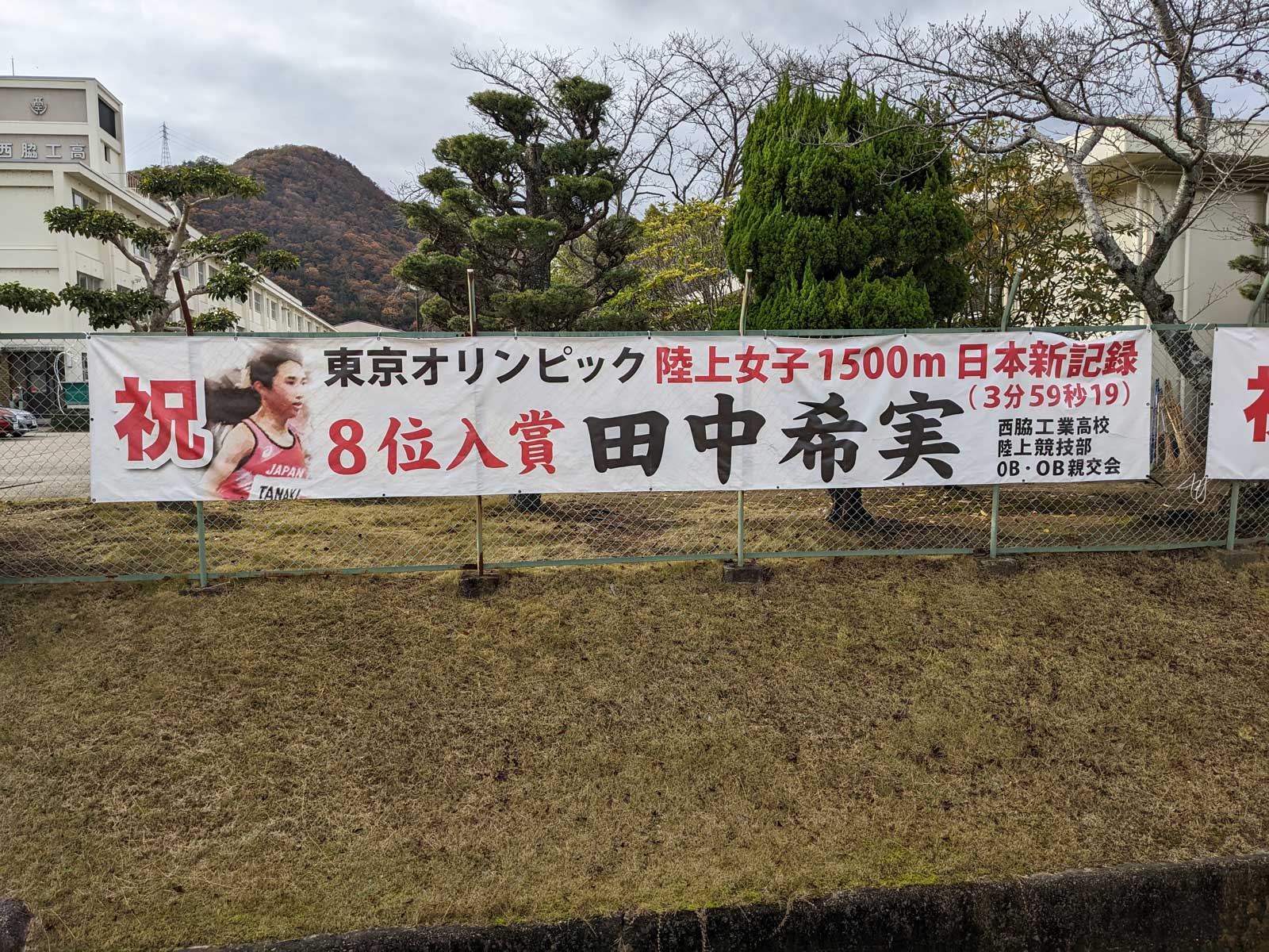 どんどんと国道を南下していくと、西脇市に入った。 西脇市といえば、中距離選手「田中希実」が通っていた「西脇工業高校」という高校が有名。 今年の全国高校駅伝も、男女ともに兵庫県で優勝して、12月にある全国大会に出場できることになっている。 高校を見に行ったら、田中希実選手は英雄のような扱いだった。