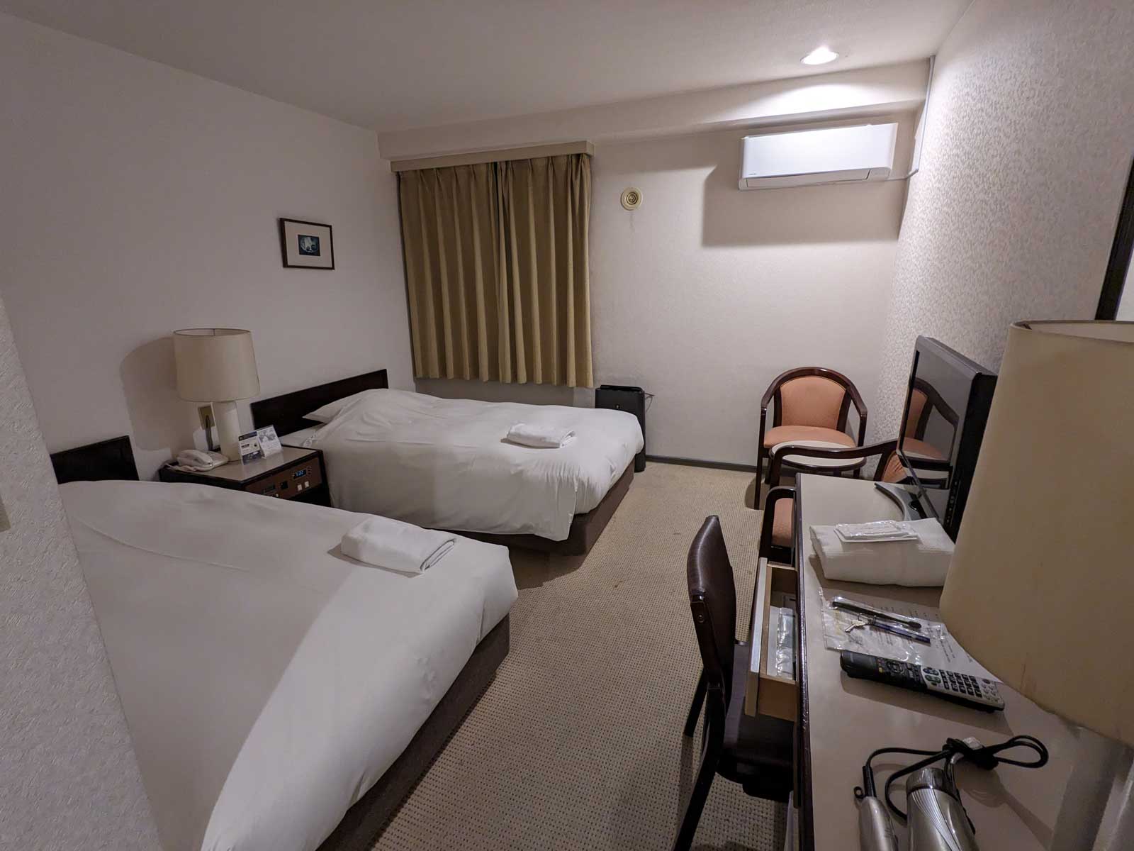 今夜泊まるホテルは「スマイルホテル米子」。 ツインルームに素泊まり、大人1名子供1名で、7,744円。 Booking.comで予約したので905円割引になって、6,839円だった。