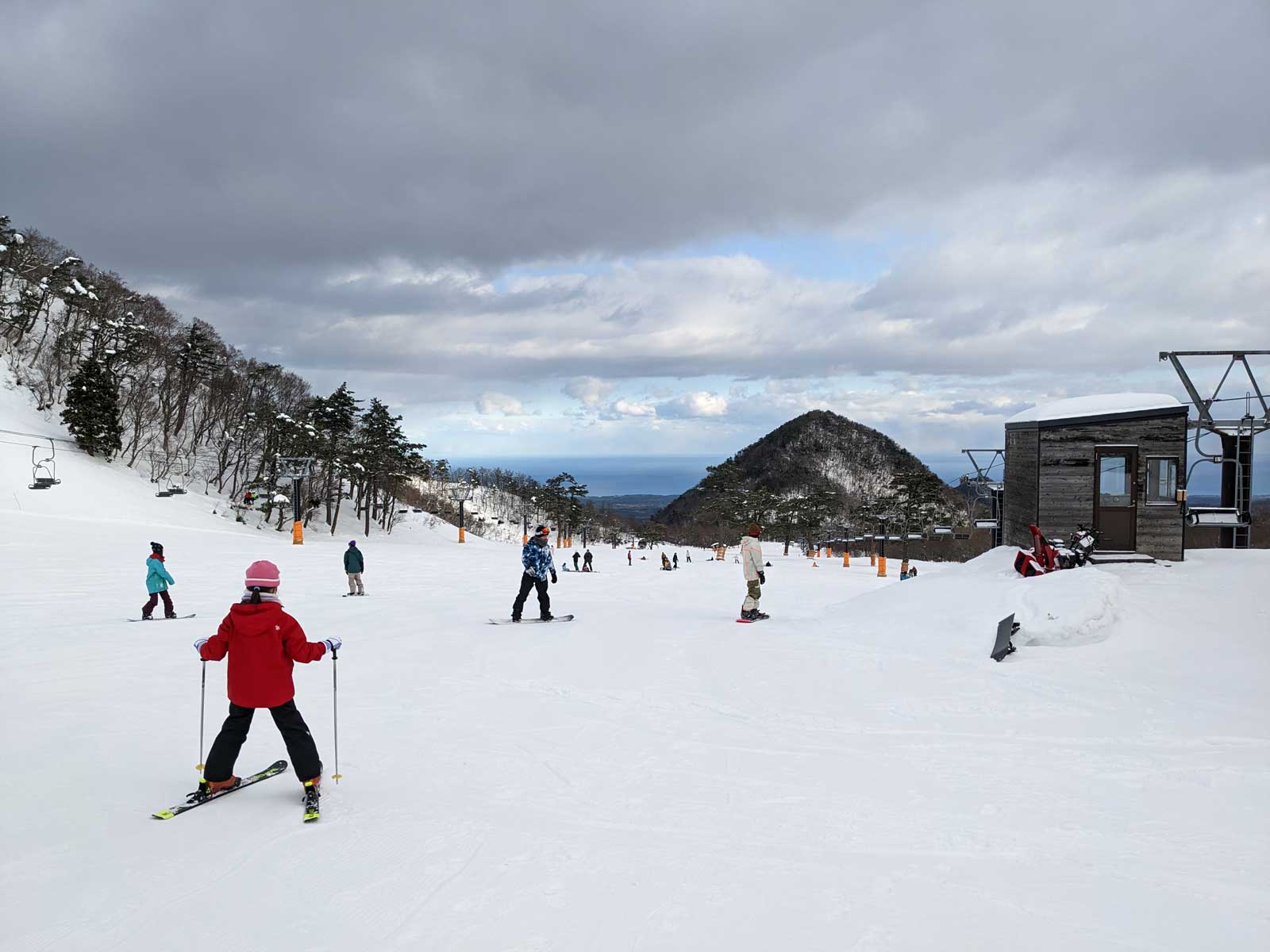 まだ8時過ぎなのでゲレンデはガラガラだった。 1年ぶりのスキーは最初は怖かったが、1回下まで滑ったら感覚を取り戻した感じで楽しくなってきた。 三女も最初は怖かったようだが、感覚を取り戻してきて楽しく滑っていた。 10時くらいになるとゲレンデが混み始めてきた。 リフトは1回乗るのに30分近く待つようになってきた。 途中で、豪円山ロッジで休憩したりしながら遊ぶ。 豪円山ロッジの食堂は休止していて、ここではお昼ごはんが食べられない。
