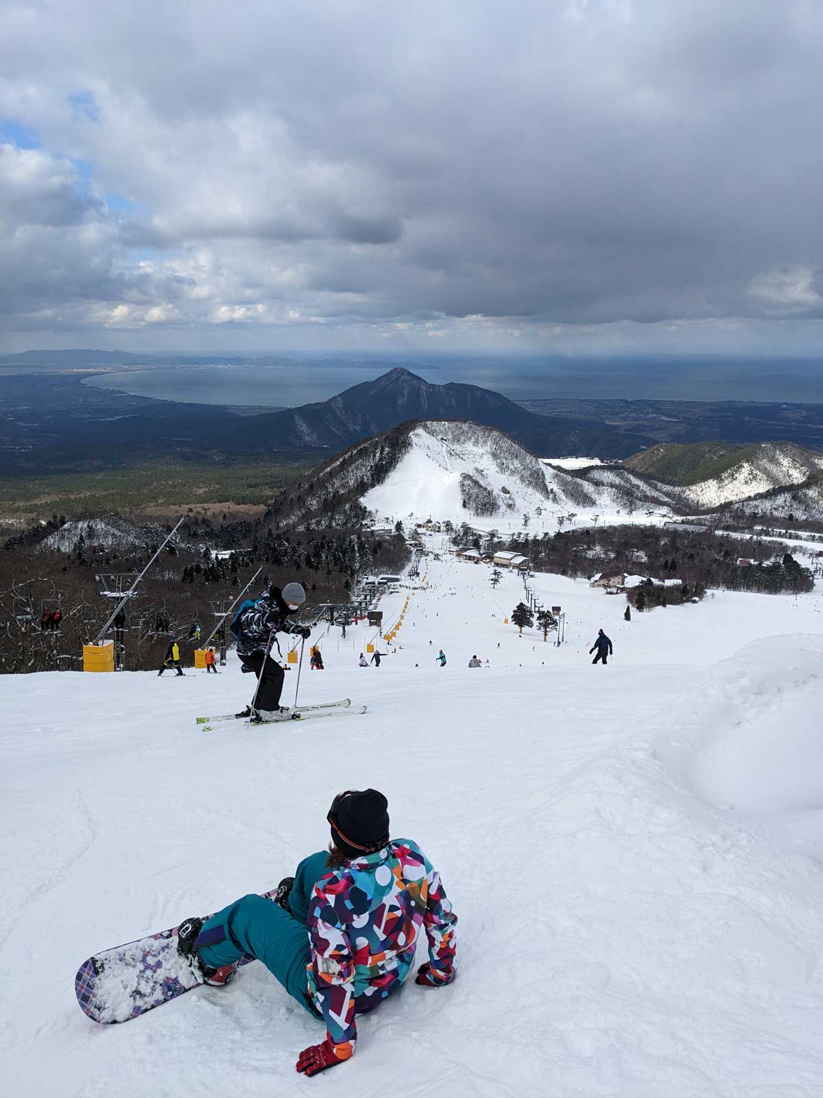 豪円山エリアはさすがに混みすぎなので、空いているであろう中級コースのある中の原エリアに行くことにした。 だけど、こちらも思っていたよりは混んでいて、リフトに乗るのに10分程度はかかる。 何度かこちらのコースを滑って、中の原エリアの休憩所でお昼を食べる。 休憩所もかなり混雑していて、ラーメンを受け取るのに10分以上並んだ、空いている席を探すのにも苦労した。