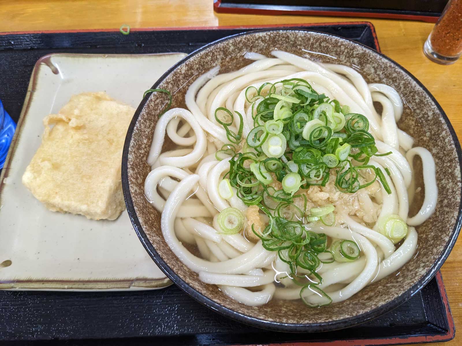 丸亀のゆめタウンに行きたいので、また丸亀方面に戻る。 土器川の方から戻っていて、途中に「なかむら」を通り、それほど混んでいなかったのでここでうどんを食べる。 多分今までに食べたことがないであろう、かけうどんを食べた。
