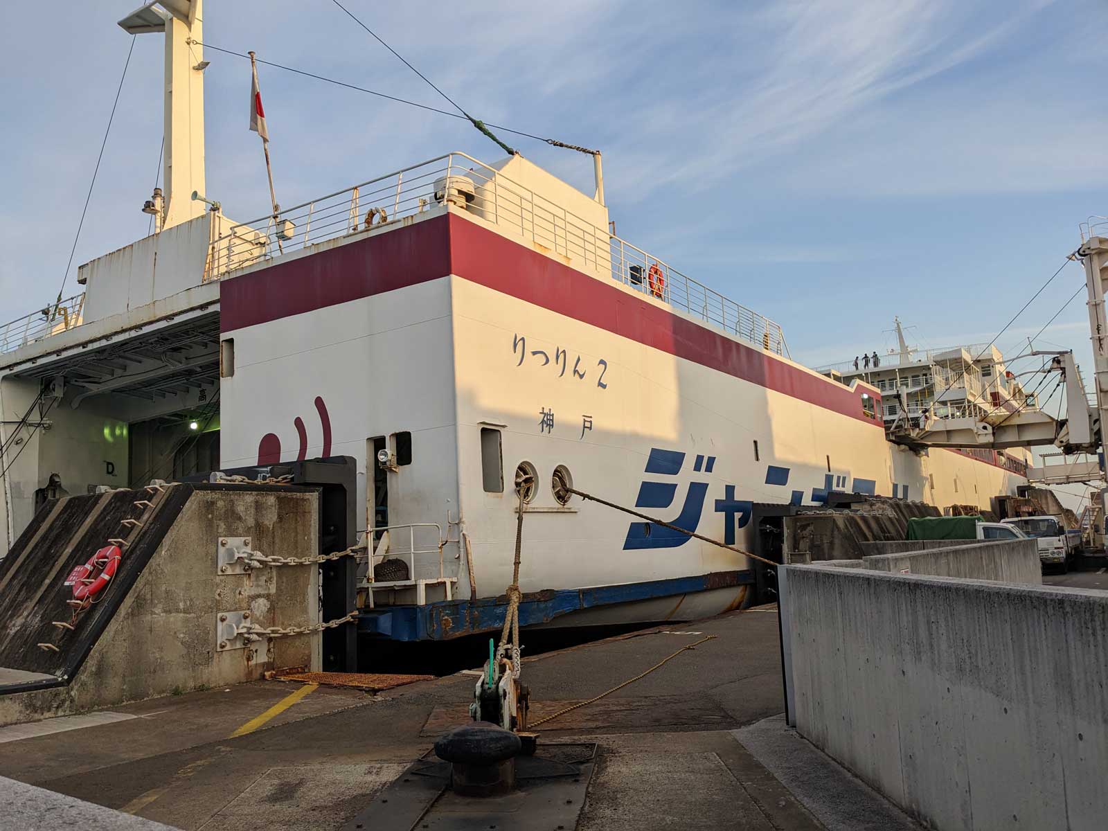 朝4時40分くらいに起床。 今日は三女と小豆島にサイクリングに行く。 荷物は前日準備してあって、車に自転車も積んである。 高松東港から6時出港のジャンボフェリーで小豆島の坂手港に向かうので、まずはフェリー乗り場に行く。 5時に出発。 車を運転している最中に気づいたが、ロードバイク用のチェーンロックを持ってくるのを忘れてしまった…… だが取りに帰る時間もないし。 今日はノーロックで行くしかない、盗難が非常に心配だが…… フェリー乗り場の駐車場に着いたのは5時25分くらい。 だが、その時点で100台ほどある駐車場は満車、どこにも止める場所がないし、止める場所がなくてウロウロしている車が数台いる。 ここは工業地帯で他に駐車場もないので、駐車場前の広いスペースの他の車が止めている場所に並べて止めた。