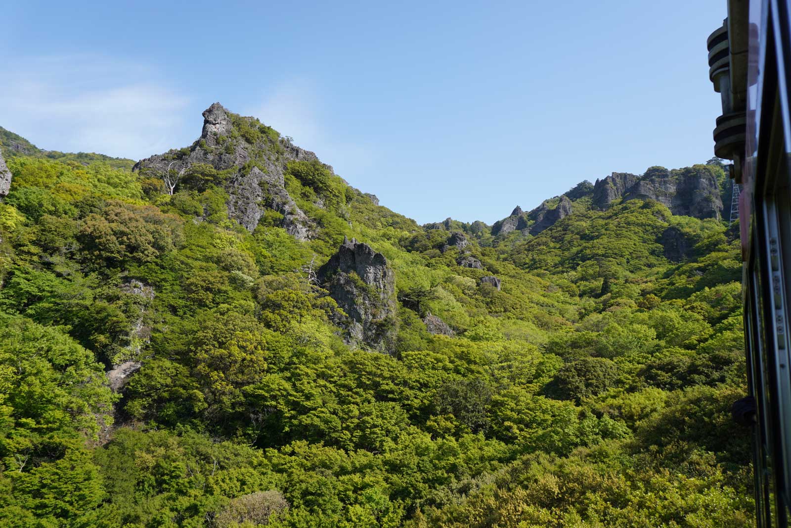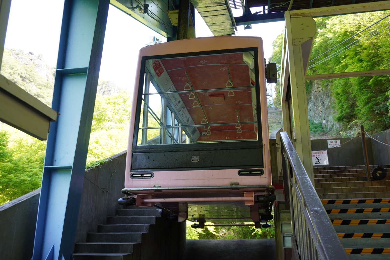 紅雲亭でロープウェイ往復のチケットを購入、大人1,970円、子供1,100円。 合計で3,080円、けっこういい値段だ…… ロープウェイは12分毎に出ているのですぐに案内された。 ロープウェイの中では寒霞渓についての説明が放送されていた。 素晴らしい景色を見ながらの5分間だった。