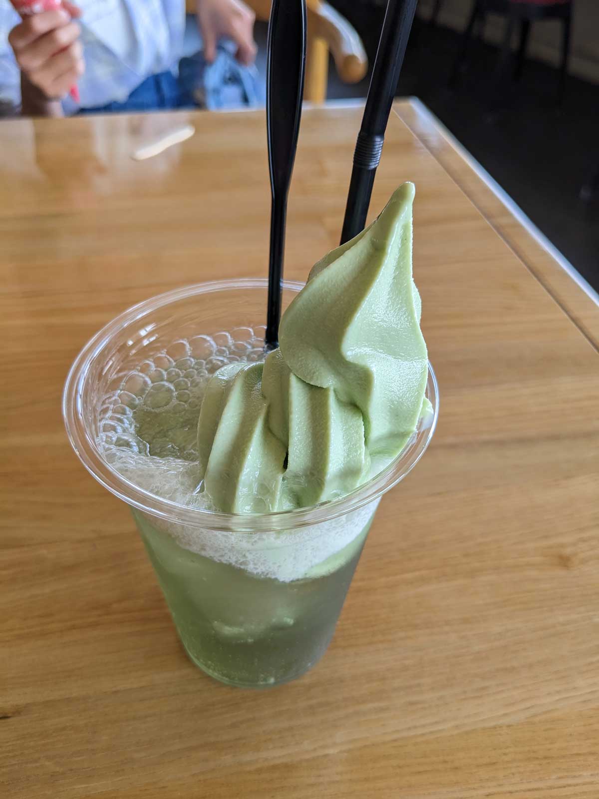 海で遊んでからはオリーブ公園へ。 魔女のほうきは2本余っていたが、撮らないでいいとのことだったので売店でデザートを食べた。 三女は今日2つ目のソフトクリーム。