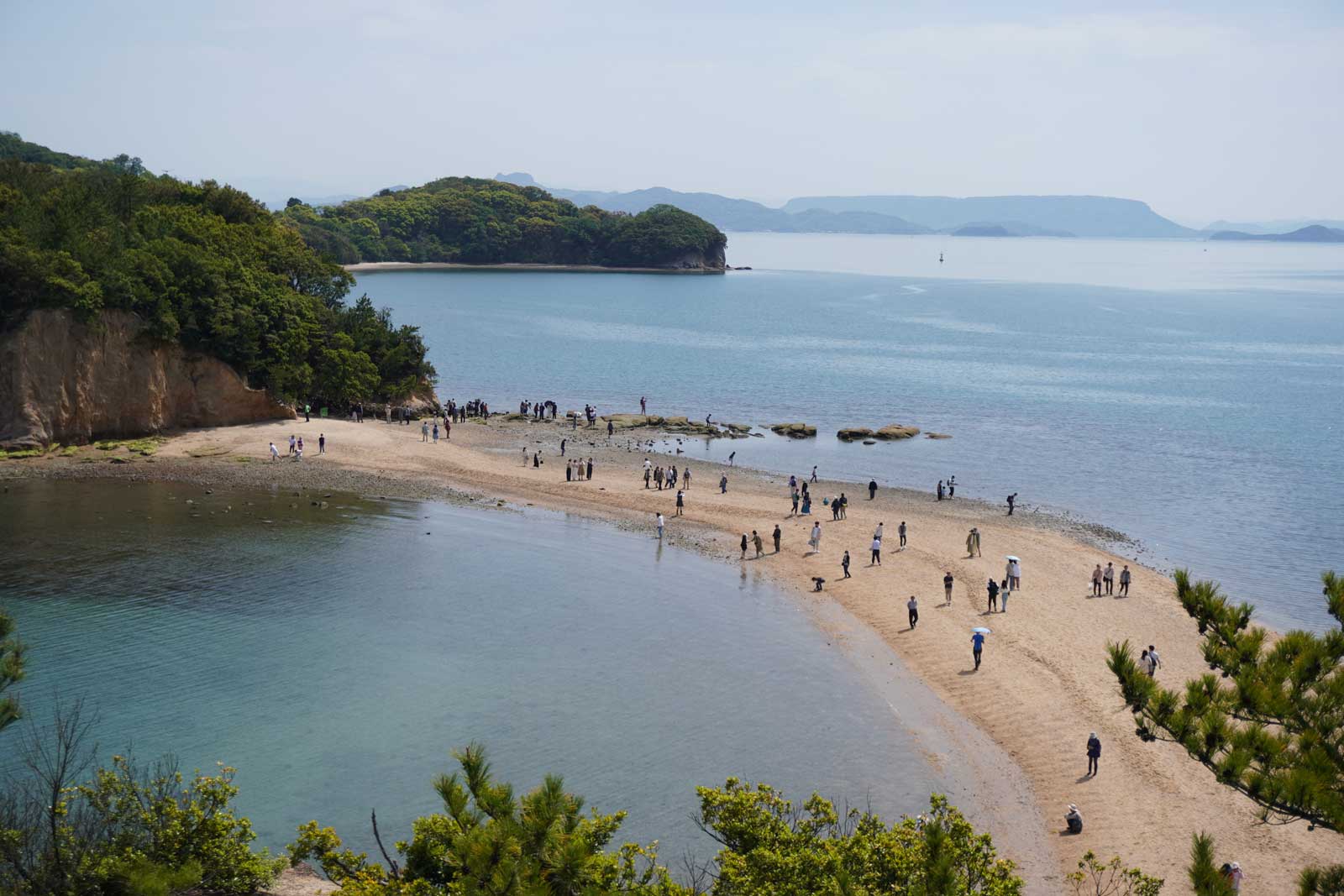 今日の最後の目的地はエンジェルロード。 事前に潮が引く時間を調べておいて、今日の行程ならちょうどいいタイミングだったので安心していた。 エンジェルロードの駐車場はかなり混んでいた。 自転車だから特に関係はないけど、人もすごい多かった。