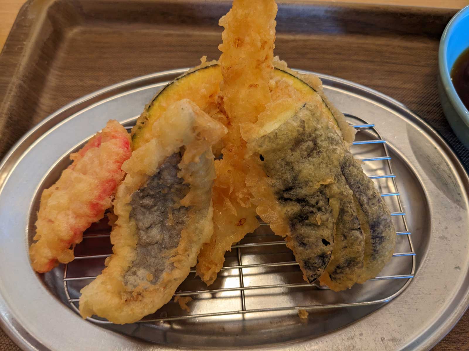 岡山駅内のさんすて岡山の中にあった「天麩羅 えびのや」でご飯。 ちょい飲みセットという、ビール+天ぷら盛り合わせに加え、天ぷら定食を注文。 結果、大量の天ぷらの盛り合わせが出てきて、全部食べきれるか不安だった。 だけど、ビール飲みながら全部食べきることができてお腹いっぱい。 この量食べてビールも飲んだのに2,200円くらいしかかからなかった。