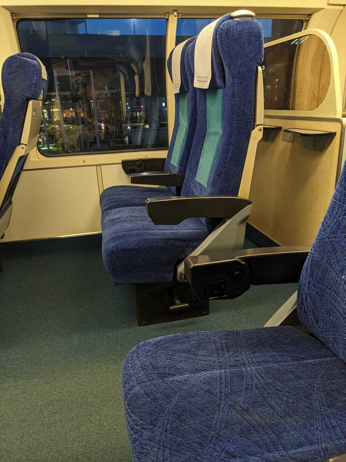 帰りの電車の時間になったので岡山駅に戻り、マリンライナーのグリーン席に乗り込む。 この時点で指定席は満席になっていたが、グリーン席は半分も埋まってなかったので非常に快適に高松まで戻ってくることができた。