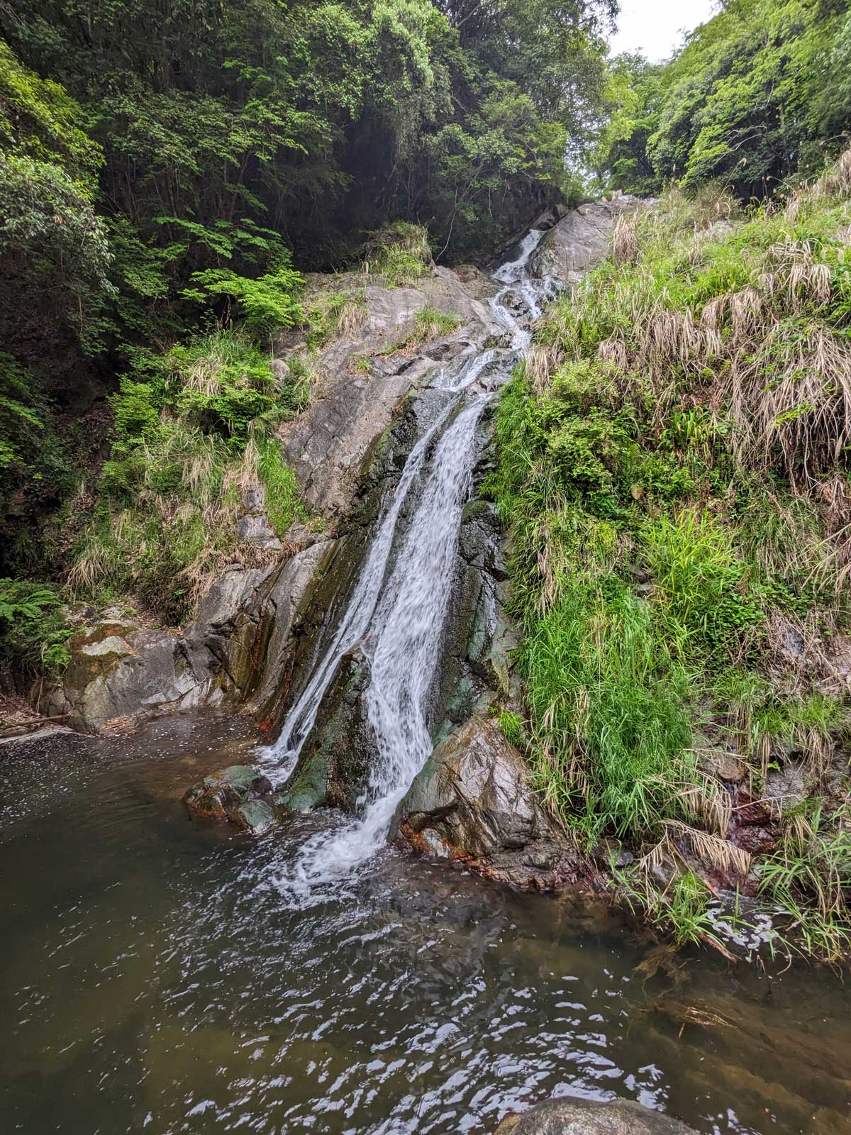 さっきまで暑かったので滝を浴びに、塩江にある不動の滝に行くことになった。 浴びるといっても、足を入れるだけだけど。 足を入れる準備をして不動の滝へ。 天気が悪いので誰もおらず。