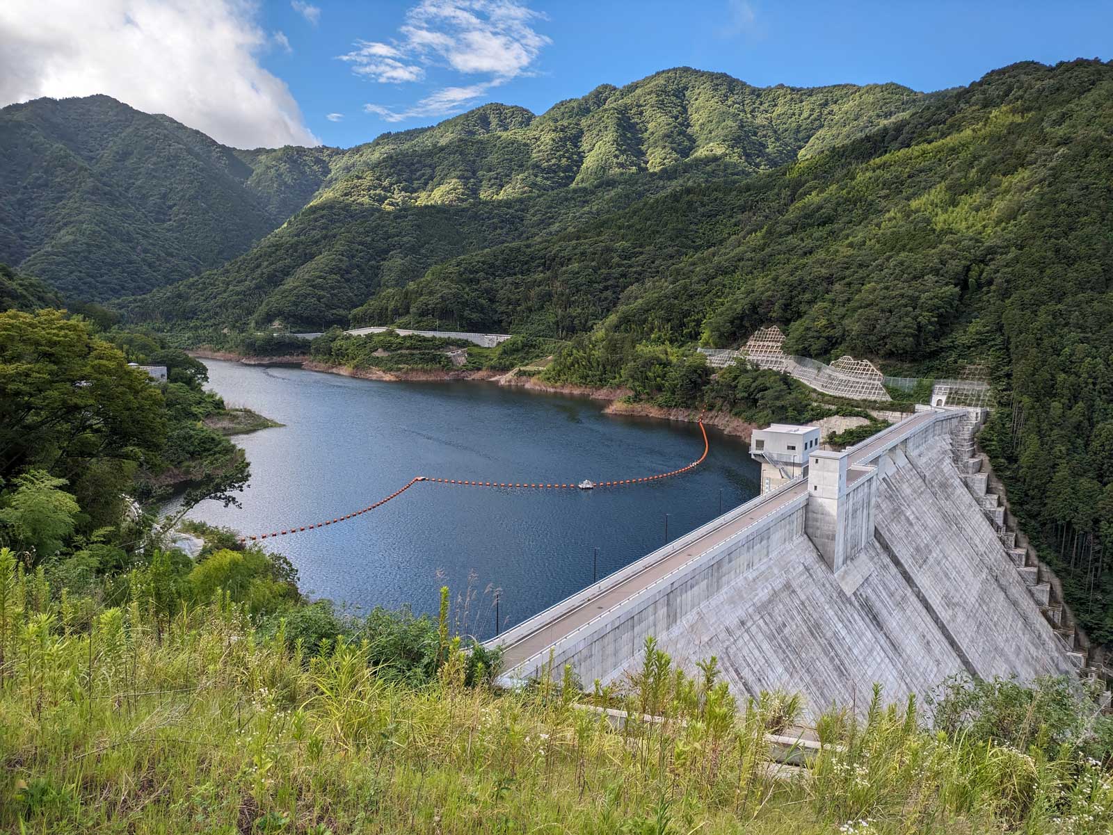 あとは帰るだけなのだが、帰りは基本的に下り勾配なので、それで調子にのったのか「椛川ダム」に行くことになった。 椛川ダムまでは、国道をそれてから2kmくらいひたすら上り坂の区間がある、国道ではないので勾配も急だ。 さすがに急すぎて自転車押しながら上っていたが、椛川ダムまで来ることができた。