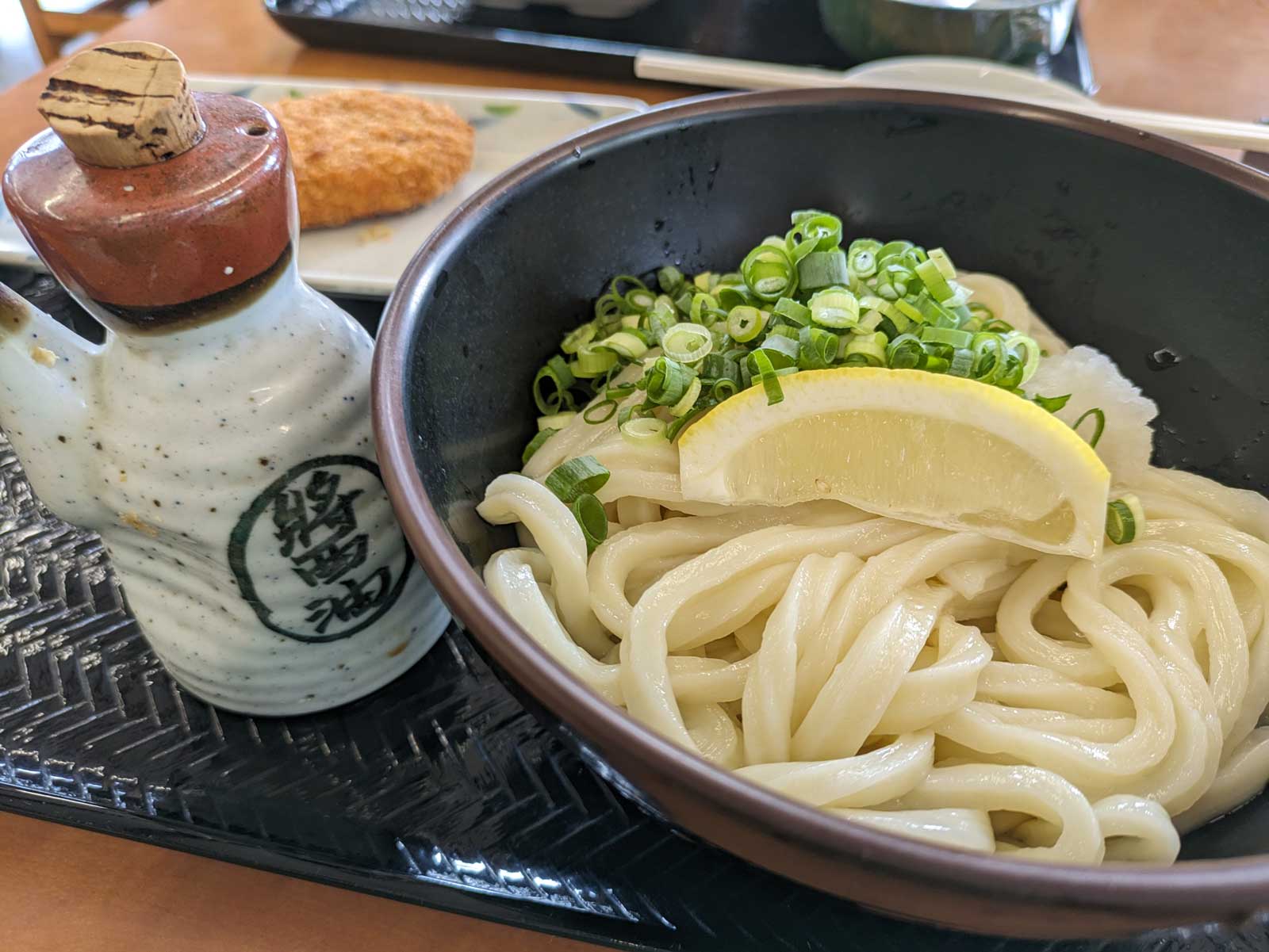 帰宅してシャワーを浴びてからはお昼ごはんを食べに、綾川の「香川屋」へ。 いつも釜揚げうどんばかりなので、今日は違うものを食べようと思って、生醤油うどんを食べた。