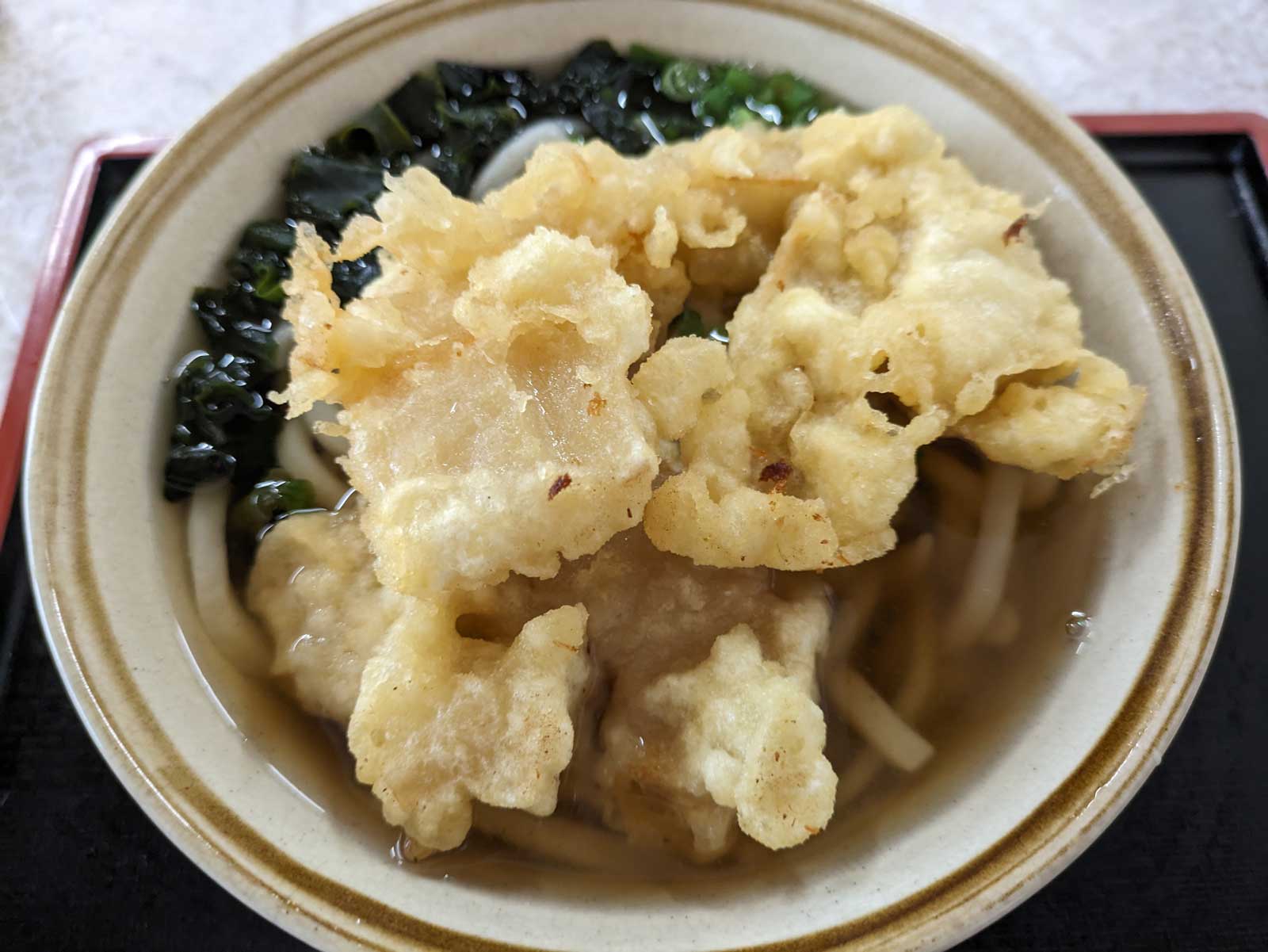 「竹の子うどん」という見たことのないうどんを注文。 大体は想像出来ていたけど、竹の子の天ぷらが乗ったうどんだった。