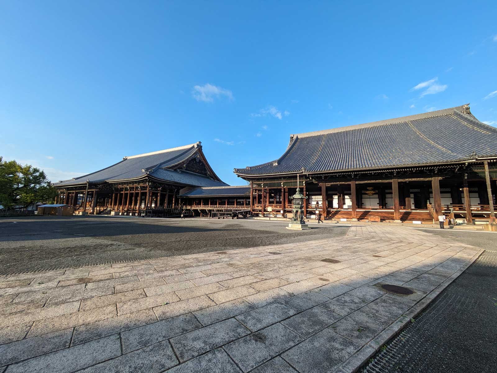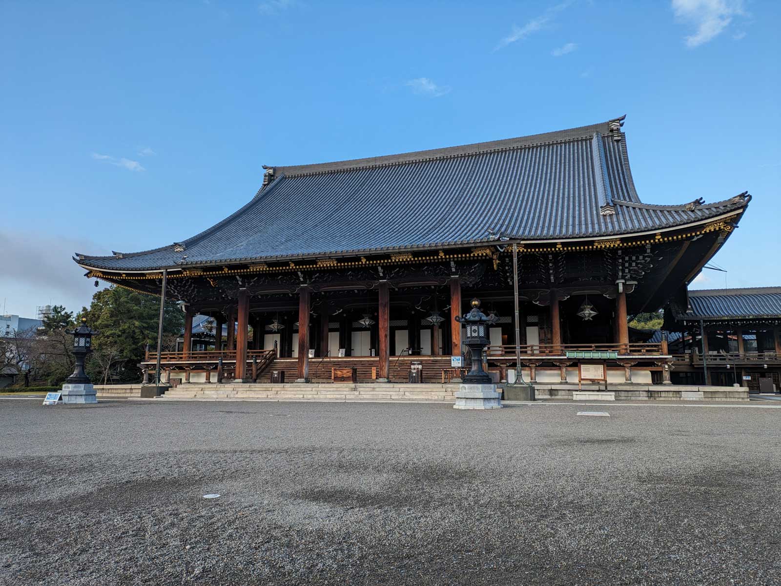 駅の反対側にある、西本願寺、東本願寺を見て回る。 東西で分かれているのは歴史的な経緯があるらしいが、超巨大な寺院が、駅から徒歩5分のところに、2つもあるのは凄い。 広さも尋常じゃないし、土地代だけでも凄まじい金額になりそうだ。