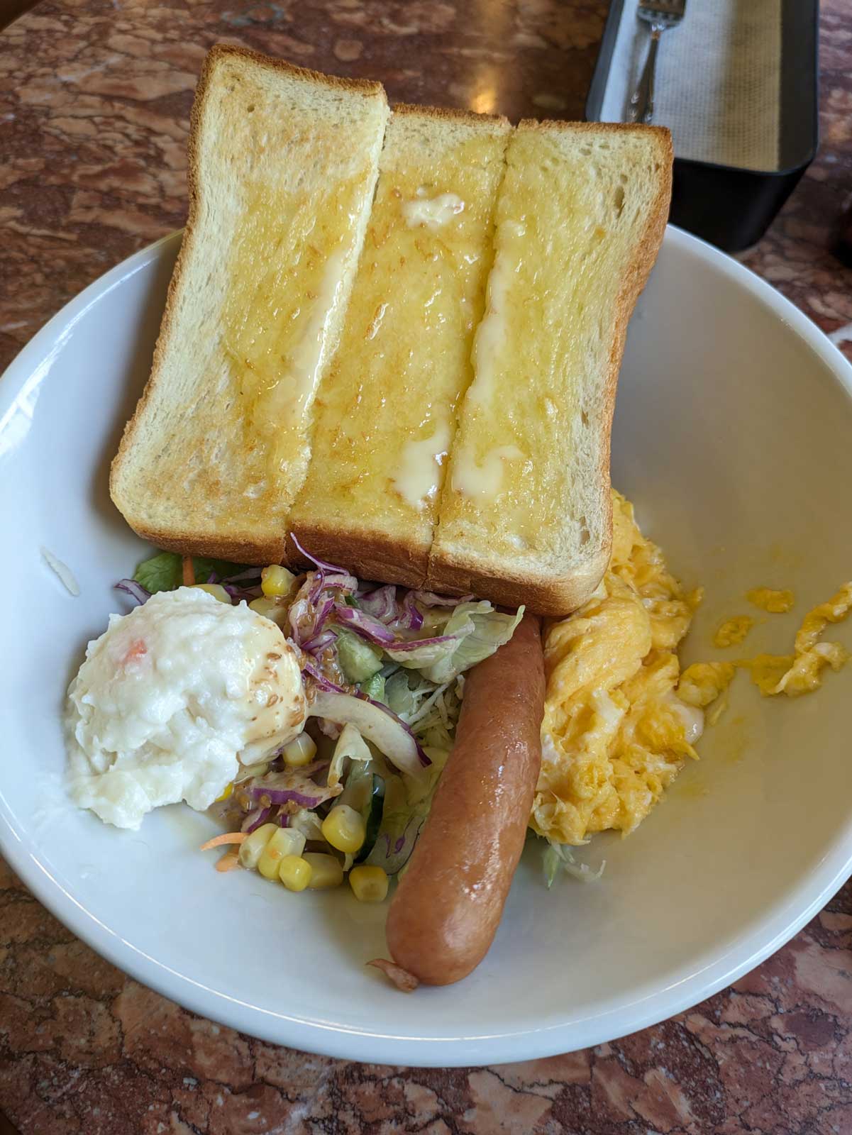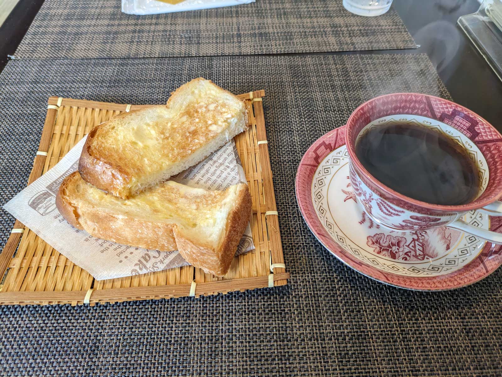 喫茶店を探しながら自転車を漕いでいたら発見した「コーヒーハウストリゴ」という店でモーニング。 写真には載ってないが、これの他にサラダと目玉焼きが付いてきた。