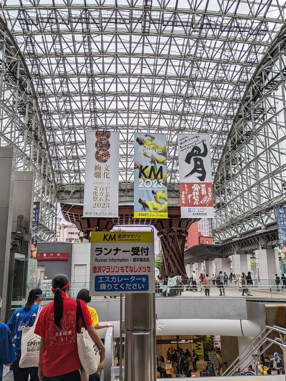 金沢に到着。 駅を出てすぐのところに「ランナー受付」と案内が出ており、そのまま地下へと降りていく。 地下に降りてすぐの場所が受付会場で、受付は一瞬で終わった。 こんな駅の目の前でやってくれるのは非常にありがたい。