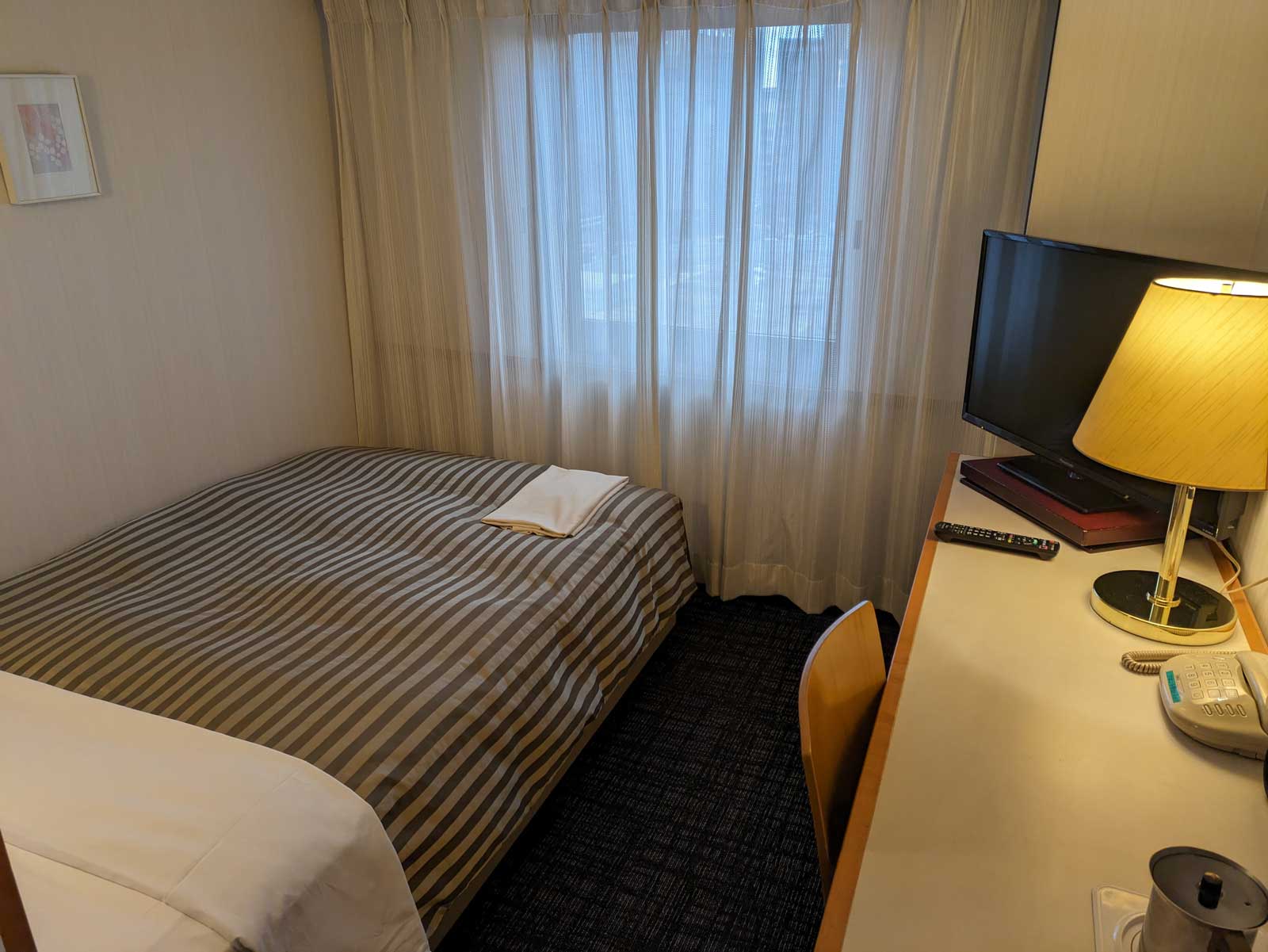 再び自転車に乗り、ホテルまで戻ってきた。 今回泊まるホテルは「ガーデンホテル 金沢」。 金沢マラソン公式の宿泊手配ので予約した。 かなり多くのホテルが公式に抑えられているので、公式通さず安く予約できる場所を見つけられなかったので。 1泊3万とか払うならいろいろあるのだが…… 素泊まり2泊で19,600円。 1泊目が11,800円、2泊目が7,800円。 金沢は観光客がかなり多いので、11,800円でも安いほうだと思う…… 京都ほどではないが、それくらい観光客が溢れている。