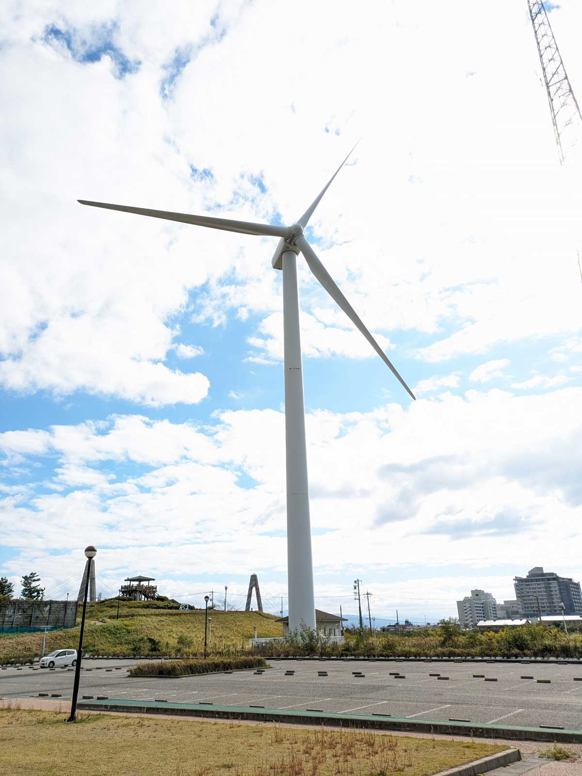 だけど、直接帰るのももったいないので、途中でサイクリングロードからそれて、風力発電のある「内灘町総合公園」にやってきた。 「恋人の聖地」という場所があり、ここから素晴らしい景色を見ることができた。