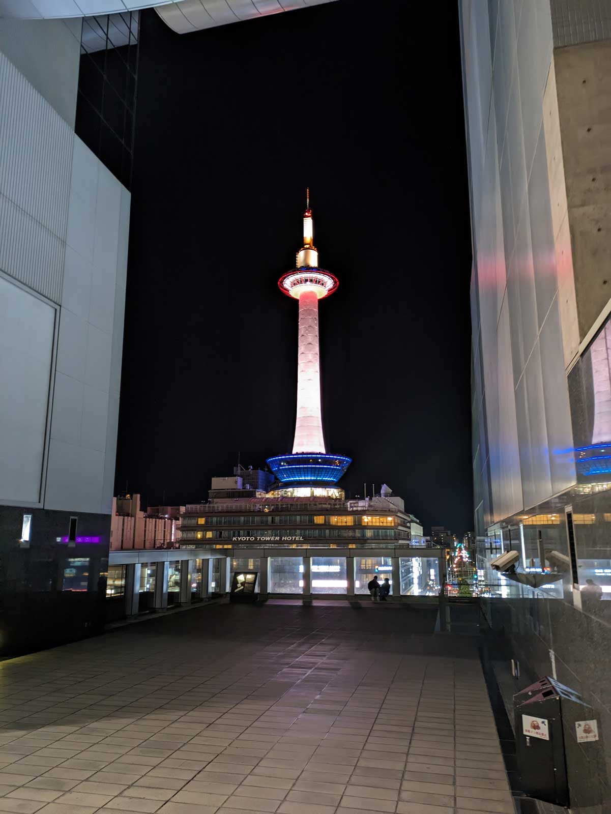 18時半くらいに淡路島の室津PAでトイレ休憩。 20時10分くらいに京都駅の京都駅中央口 烏丸、京都タワーのある側に到着した。