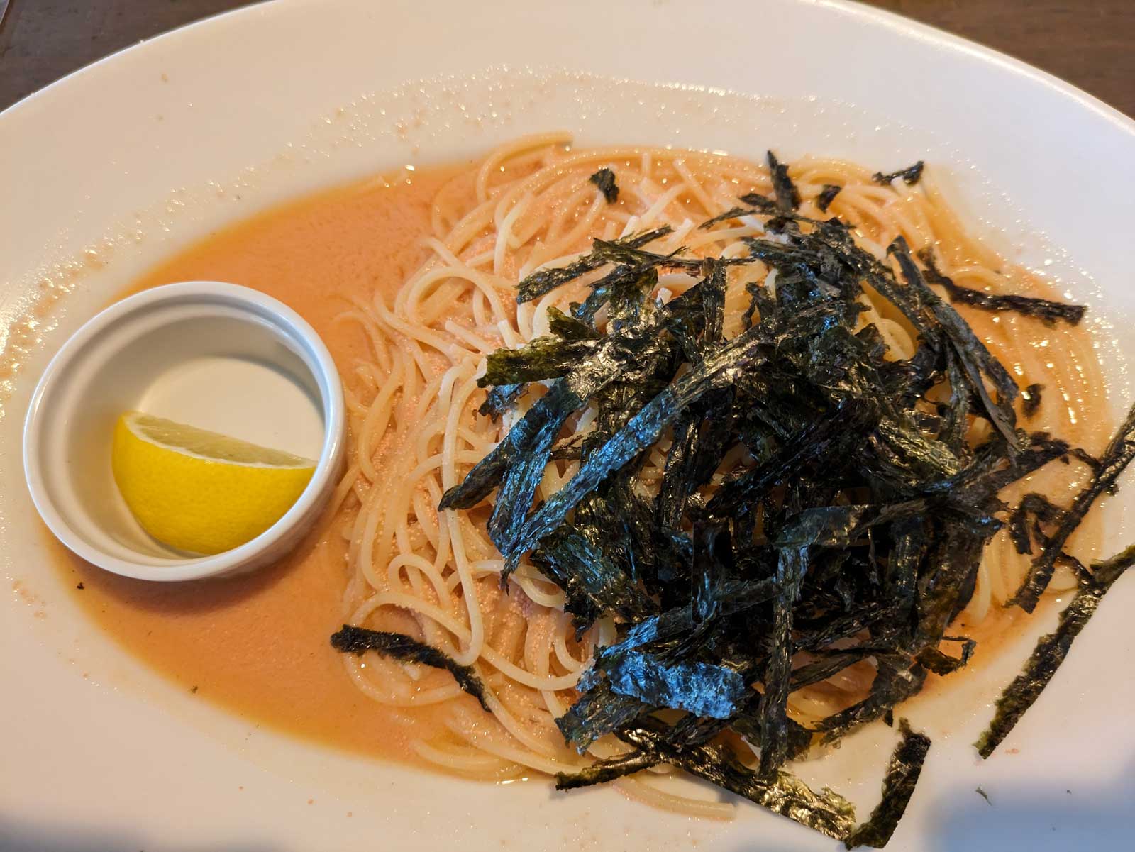 帰りにお昼ごはんでジョリーパスタに寄ったが8組待ちだったので諦め、ディアーへ。 たらこスパゲッティを食べた。