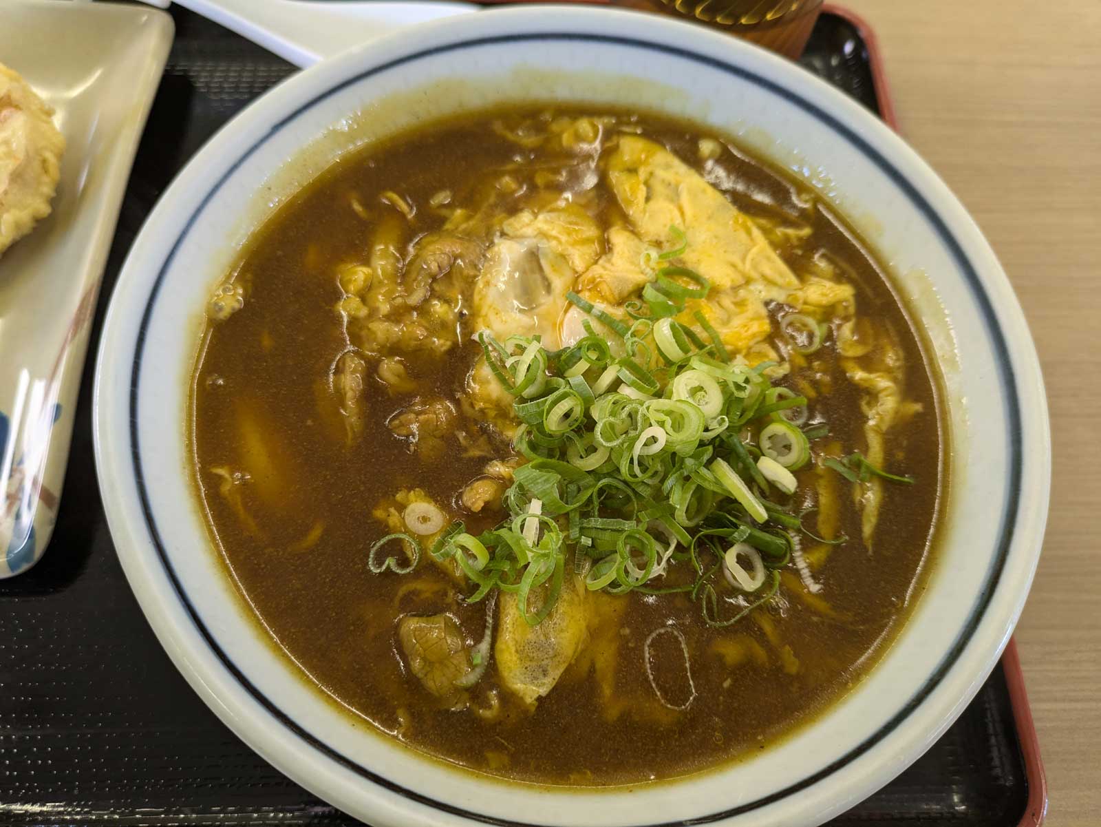 まずは朝ご飯、鬼無の「根っこ」でカレーうどん。