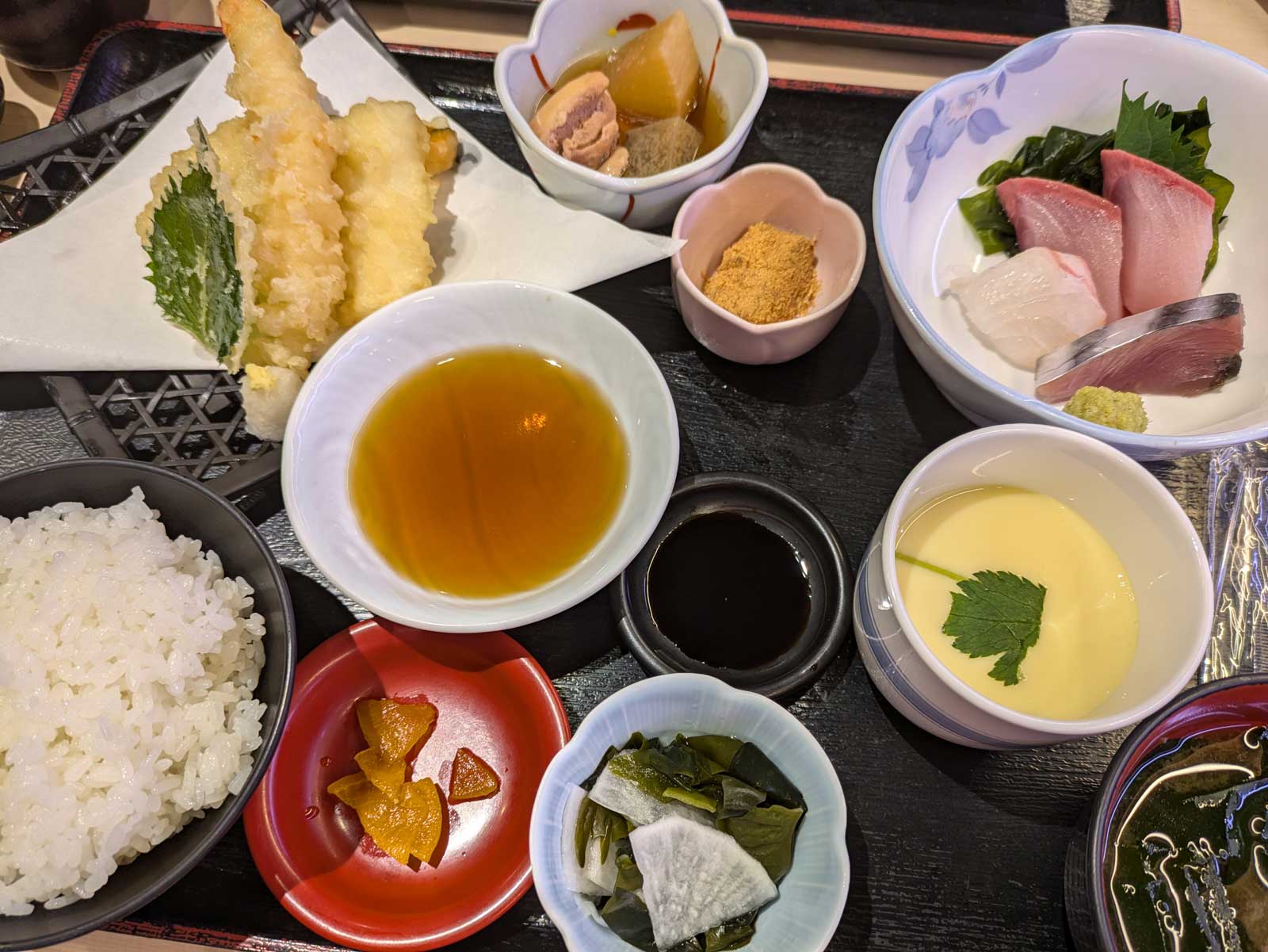 今日の21時前の飛行機で帰るので、夜ご飯はみんなで「ここも」へ。 海鮮定食を食べてきた。