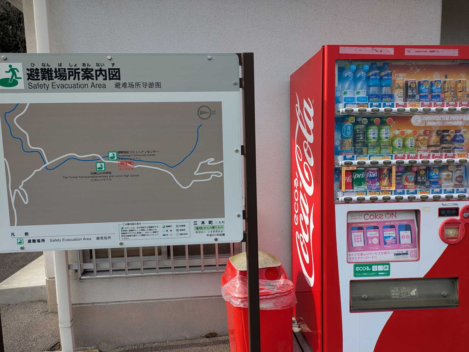 23km地点を過ぎたあたりで、左折して県道263号線へ。 集落の中を山に峠に向かって走っていく県道でめちゃめちゃ細い。 走っていて途中喉が乾いてきてしまった。 まだ次の自動販売機があると予測される場所まで10kmもある…… 残っていたinゼリーを飲んで紛らわしたりしていた。 県道沿いの民家の庭には水道があるので、声をかけてそれを使わせてもらおうか、とか考えながら走っていたら、「南部高齢者保健センター」という集会所みたいなところがあり、そこが避難所になるような施設で、建物の前に自動販売機があった。 水分が補給できる、助かった。 温かいお茶を購入して体を潤す。