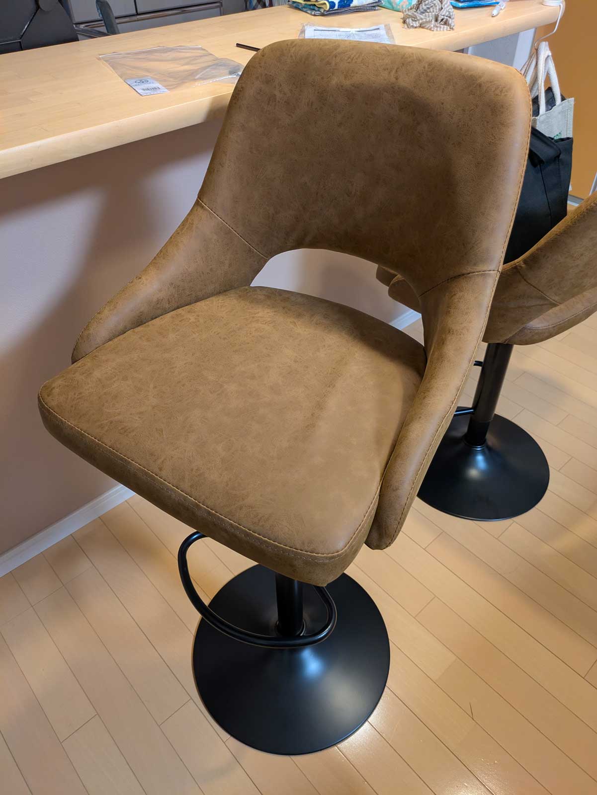 それとバーチェアが2脚きたので、ここでお酒が飲めるかもしれない。 妻が何か料理を作って前から出してくれるだろうか? バーチェアは萩原という会社の「LC-4871」という商品。