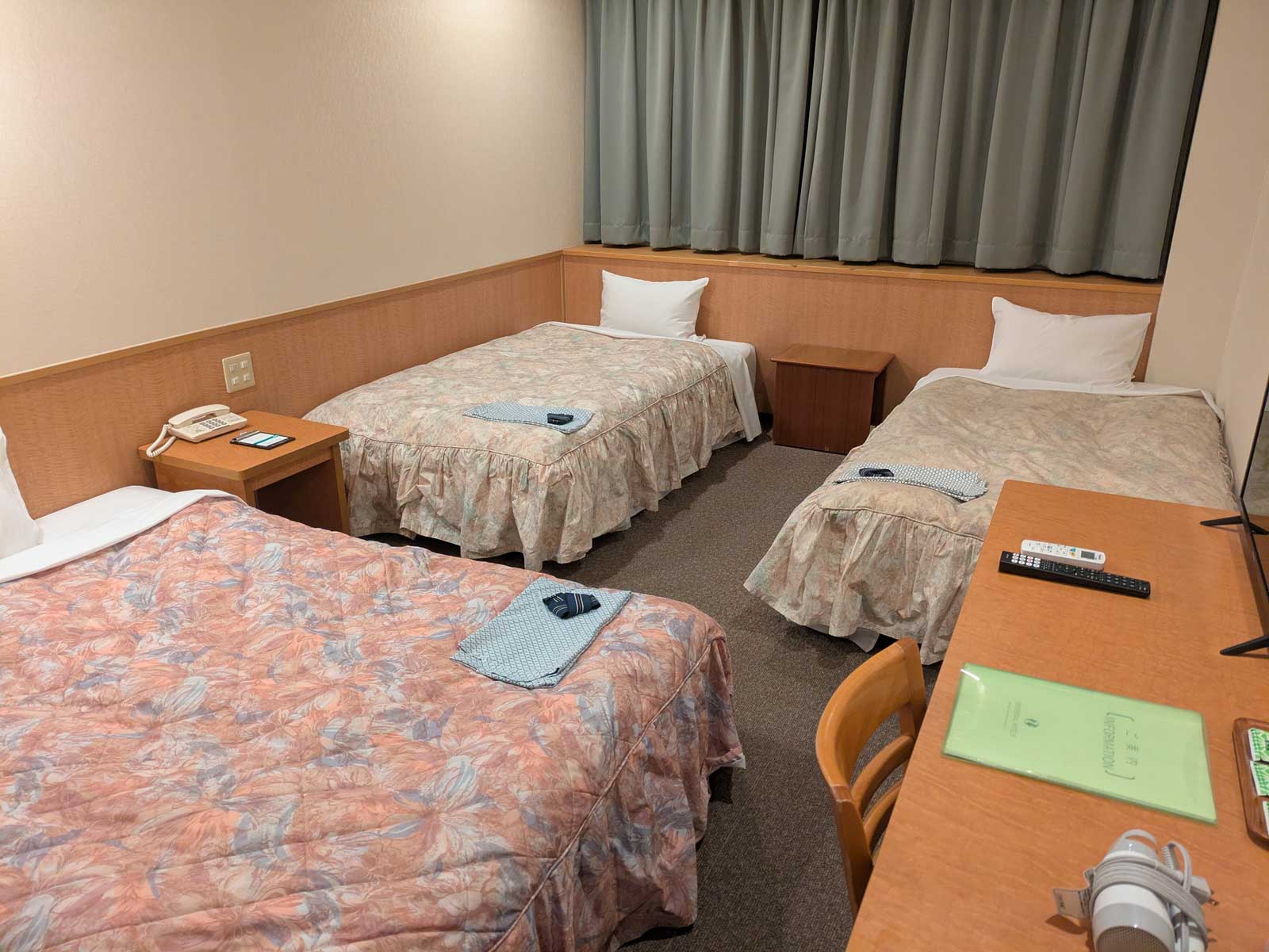 今日泊まるのは「米子ユニバーサルホテル」というところ。 トリプルルームで、朝食夕食付きで13,340円。 木曜夜にbooking.comで予約した。 元々日曜日にスキーに行く計画はあったのだが、今週三女が体調不良になったため、行けるかどうかわからなくなったので、ホテル予約がギリギリになってしまったのだ。 寝るだけなので綺麗さは気にしないので、この値段で泊まれるのはありがたい。