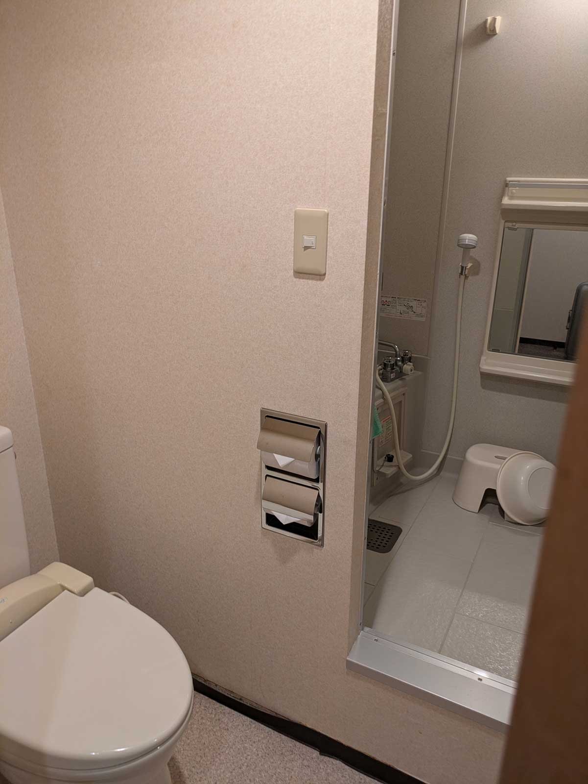 夕飯を食べてチェックイン手続きをし部屋へ。 そんなに新しいホテルではないけど、なぜか風呂とトイレが別だった。 風呂の前室みたいな所にトイレがあった。