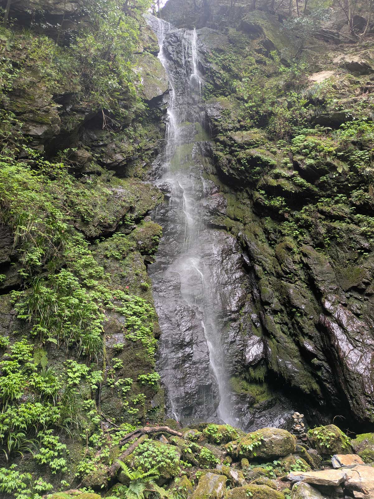 駐車場から滝までは、かなりの急な遊歩道を800m歩くみたい。 途中に無名な滝がいくつもあって、それらを見ながら雨乞いの滝を目指す。 20分も歩かないくらいで雨乞の滝に到着。