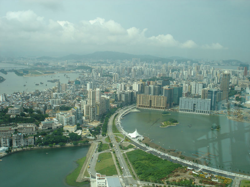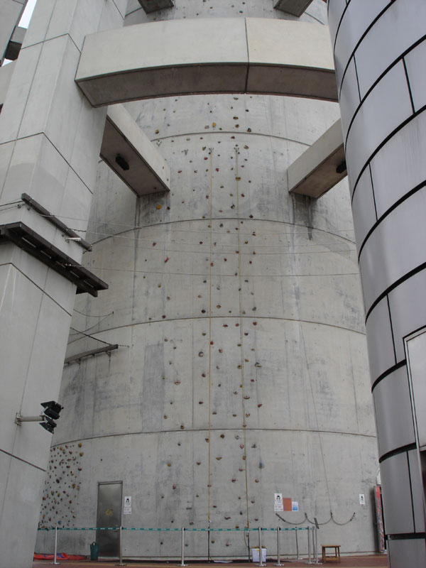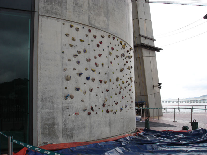 次の目的地は「マカオタワー」、ここも遠いのでタクシーで。 「マカオタワー」は高さ338mの展望台になっている。 東京タワーよりも高い。 タワーの側面の壁はフリークライミングができるように加工されていた。
