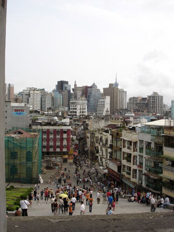マカオ最後に「ホテルリスボア」に向かう。 途中にあった公園で中国人の手品ショーをやっていたので見ていく。 手品は言葉がわからなくても楽しめる、おもしろかった。 そして「ホテルリスボア」のカジノの入り口に向かう。 警備チェックの前までいったが格好が格好なだけに入るのを断念。 ホテルリスボアのショッピングモールを歩いていたらものすごいカワイイ女の子を発見した。 今回の旅行でNO.1だな!! 赤い服がよく似合っていた。