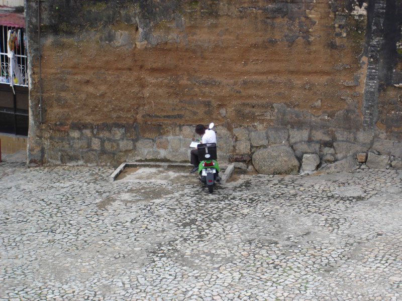 すると「何で日本人なのにシンガポールのシャツ着てるの?」と。 「以前旅行に行ったから」と答えたけど、警備員はシンガポールの後にマカオに来たと思ったらしい。 「世界中回ってるの?」と。 「違う」と答えたけど、ここから先は話が難しすぎて何を言ってるのかよくわからなかった。 適当に笑顔で返して手を振って別れた。 博物館を出て住宅地を通って遠回りにグルリと周りセナド広場に戻る。