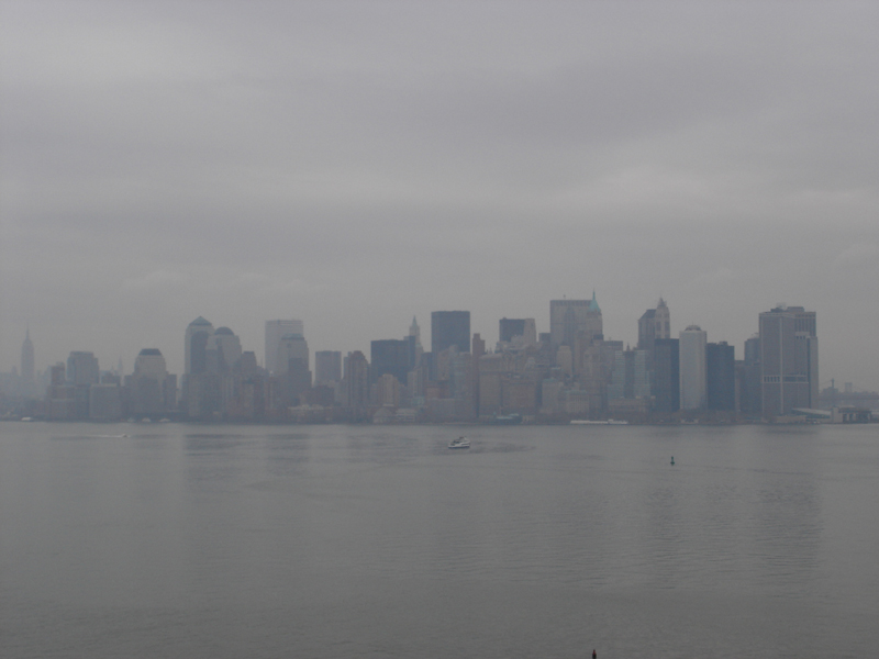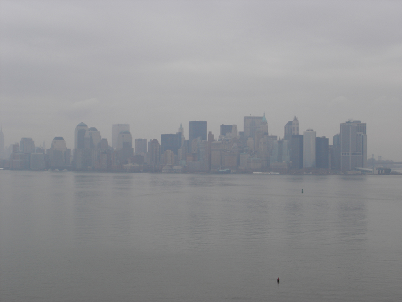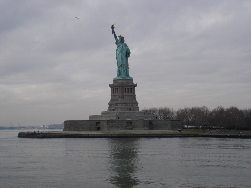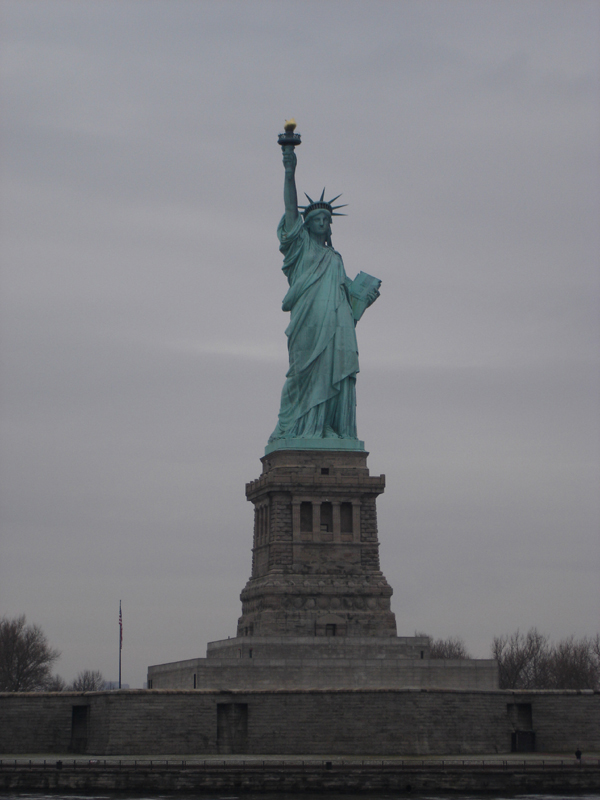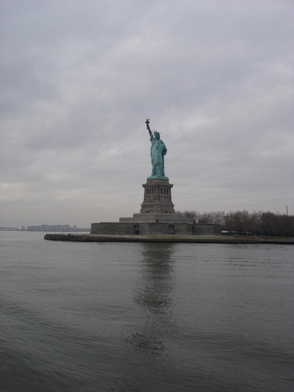 フェリーの一番上に乗り、景色を眺めながら自由の女神に向かう。 マンハッタンがだんだん遠くなっていき、自由の女神の正面に。 初めて間近でみたけれど、なかなか感動する。 これがアメリカのシンボルかぁ。