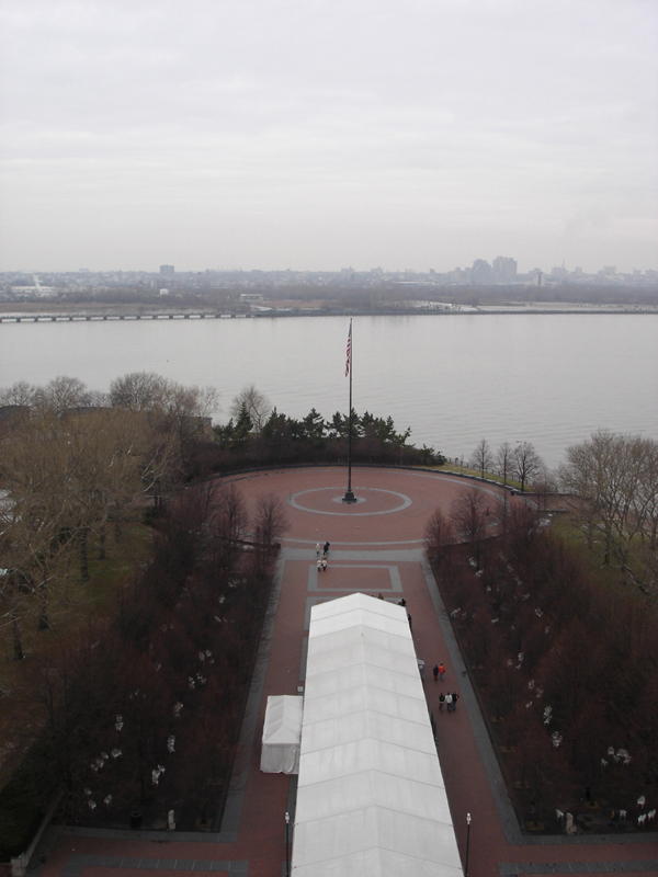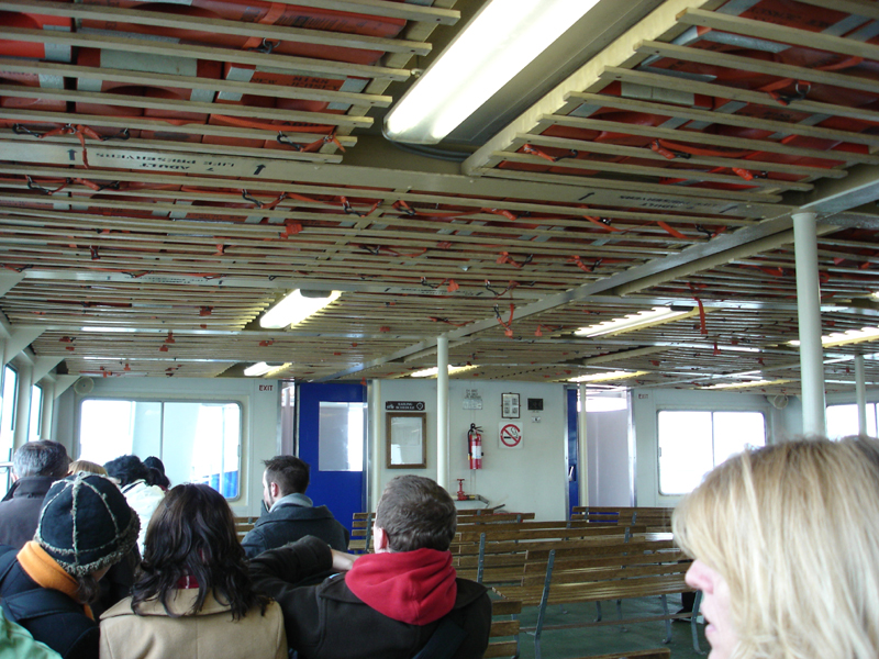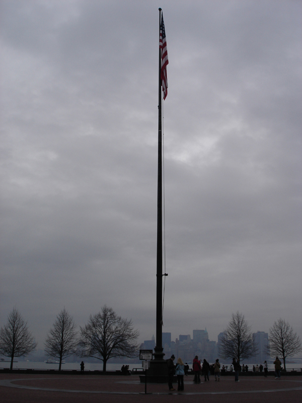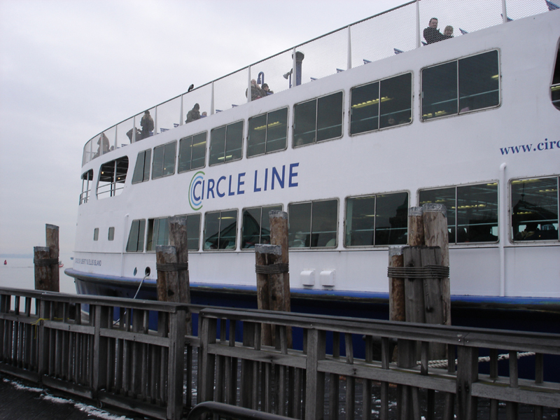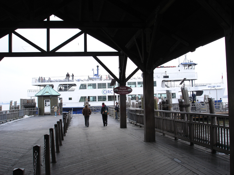 地下鉄に乗って「Bowling Green駅」まで行き、そこから歩いて5分ほどでフェリー乗り場到着。 朝早く来たのでチケットも売っている。 チケットを買ってフェリー乗り場に行く。 ここでセキュリティチェックがあった。 ここのチェックはものすごく厳しいという噂を聞いていたので、ベルト含むすべての金属類をはずした。 無事通ることができた。