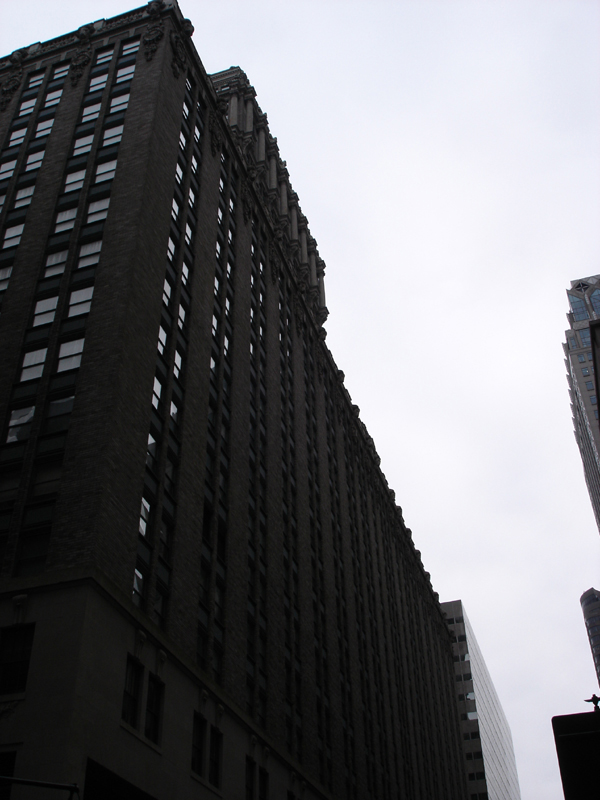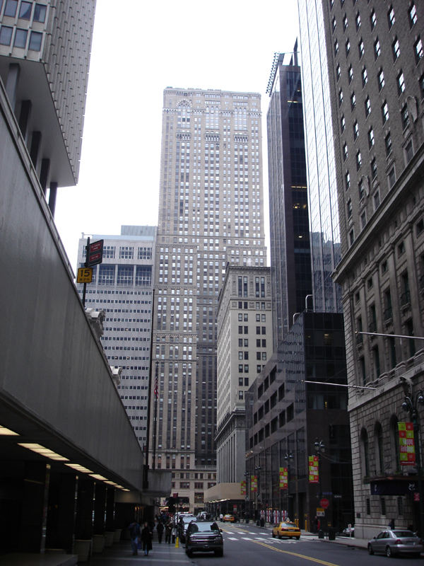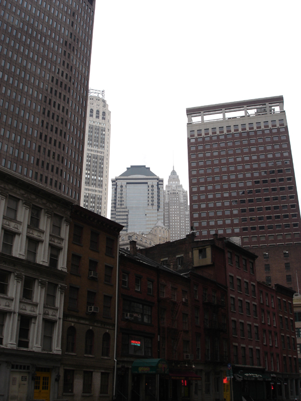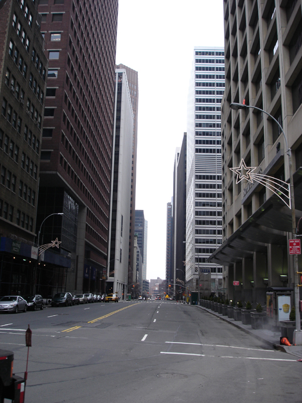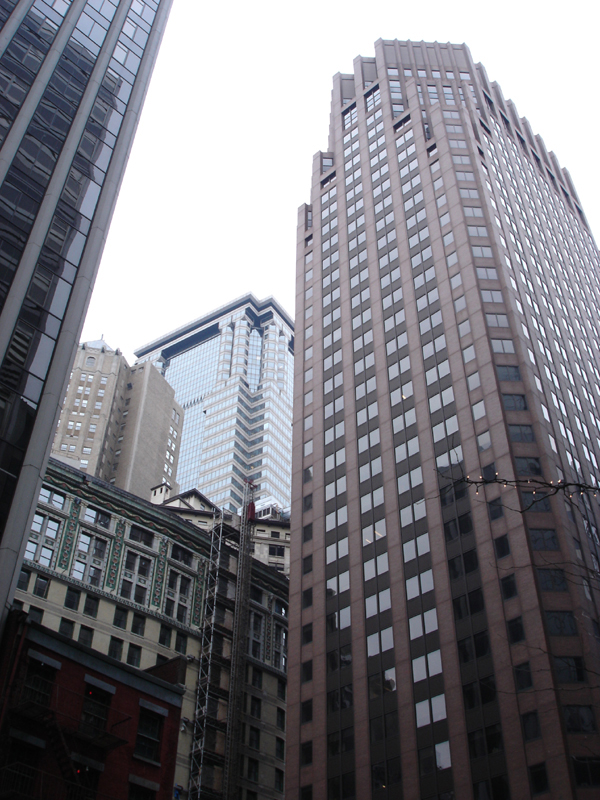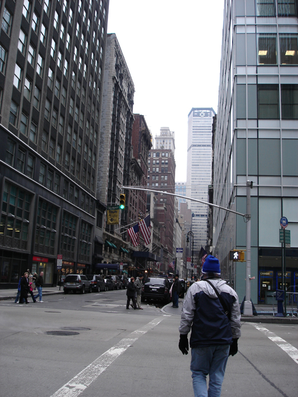 お昼はどこで食べようかな。 地図を見ていたら「リトル・イタリー」という小さなイタリアの街らしき場所があるのでそこに行ってみよう。 歩いても2kmほどなので歩いていく。 「ウォール街」を通る。 超高層ビルが立ち並ぶ、1月1日なのでほとんどのビルが閉まっていてとても静かな道を歩く。 右を見ても左を見ても超高層ビル。