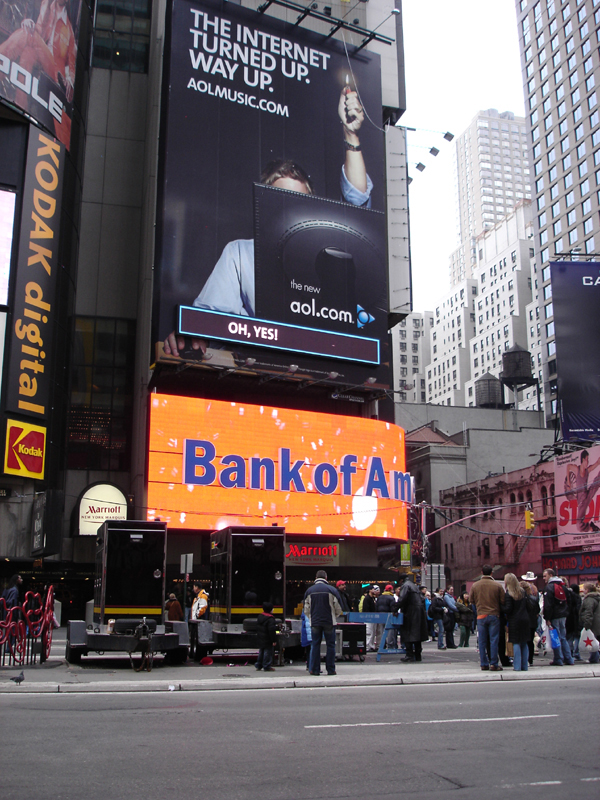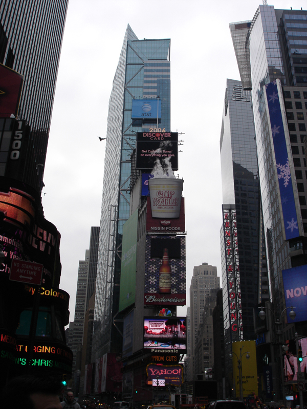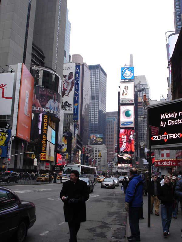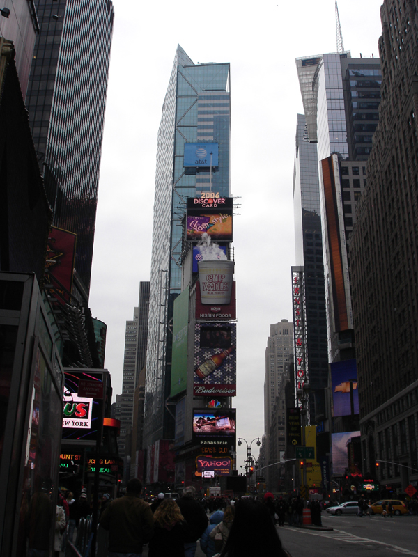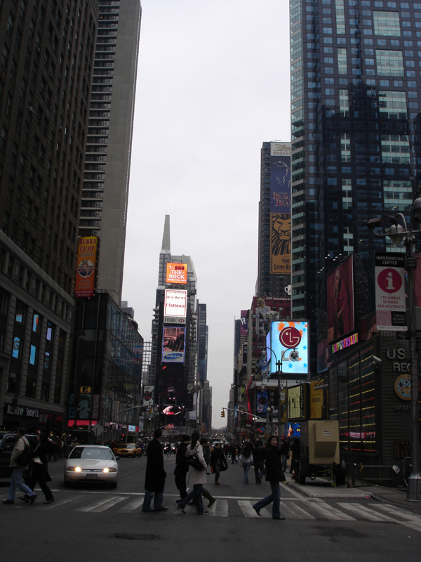 近くの地下鉄の駅から、いったん「South Ferry駅」まで戻り、それから「タイムズスクエア」に向かう。 巨大な繁華街っぽいイメージのある場所だ。 劇場が多数あったけれど、特に見たいものもないし、見るつもりで来たわけでもないので、街を歩いて楽しむだけにした。 うろうろしたけど、すごい人ごみ。 写真を撮ってる人がいっぱいいたので、みんな観光できているのだろうか。