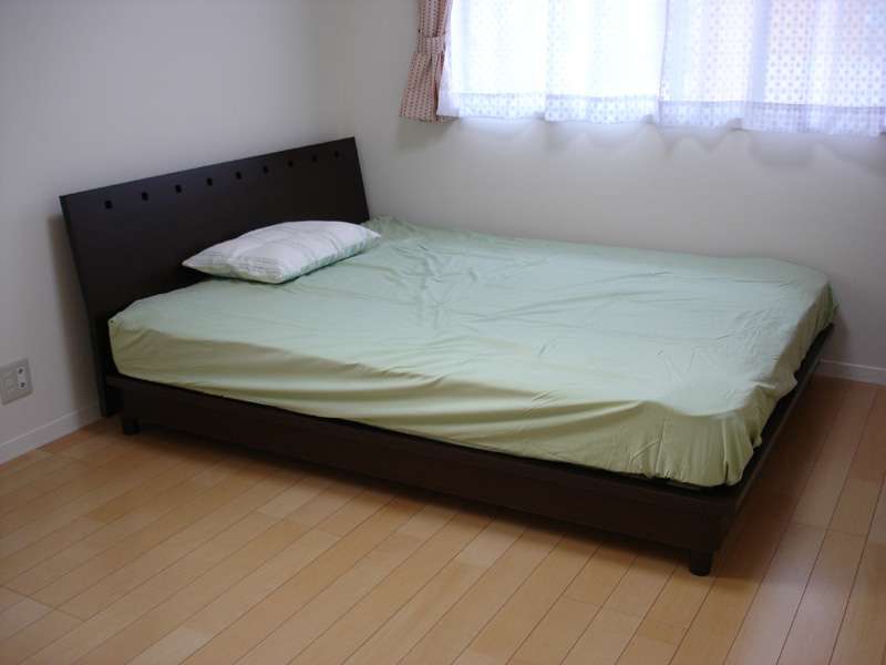組み立ててもらってベッド完成! すばらしい。 これがワイドダブルのサイズのベッド。